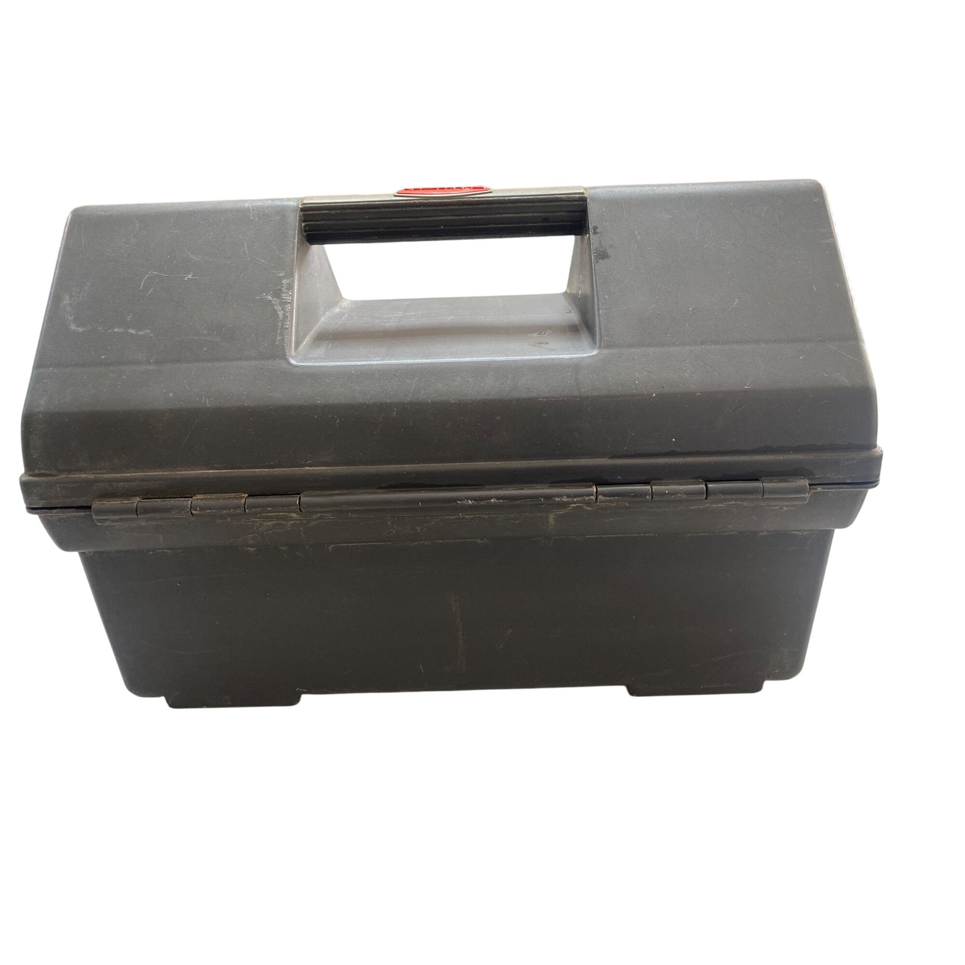 Durable toolbox with a removable tray, designed for organizing and transporting tools. Its sturdy plastic construction ensures long-lasting use. The secure latch keeps contents safe during transit.