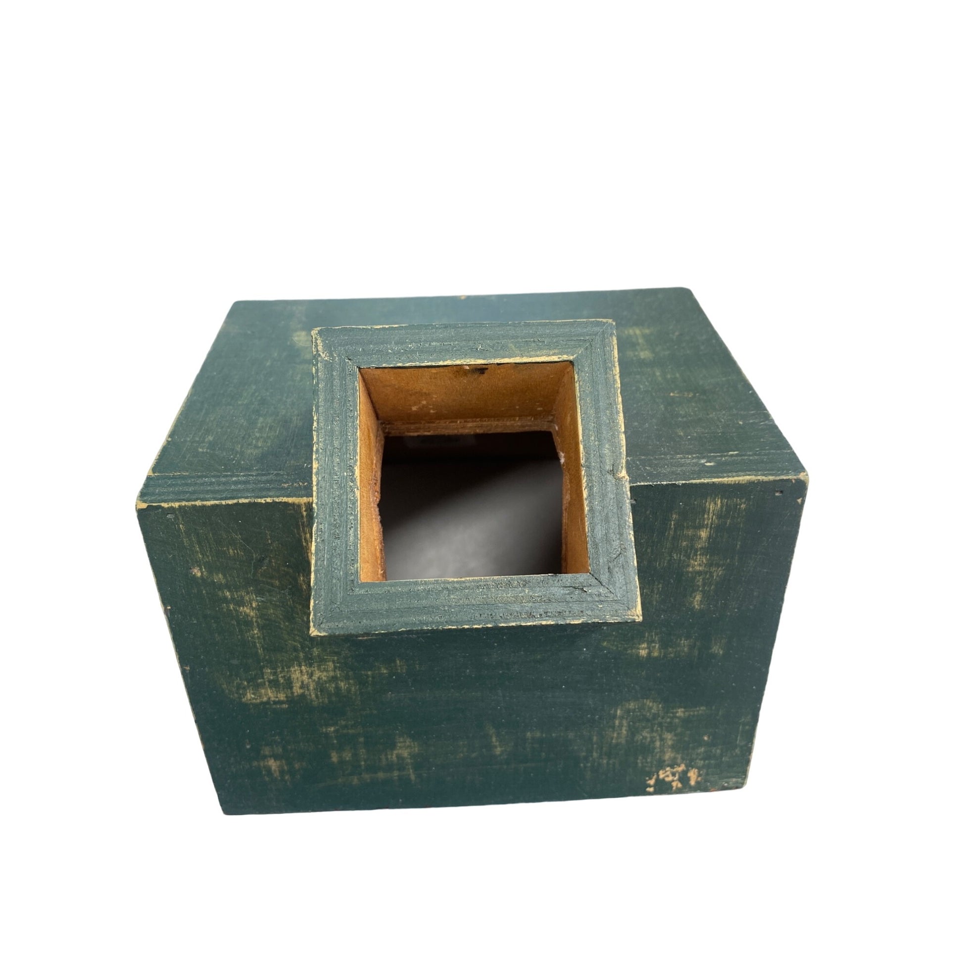 Rustic Green Log Cabin Tissue Box Handcrafted Wood Interior Decor