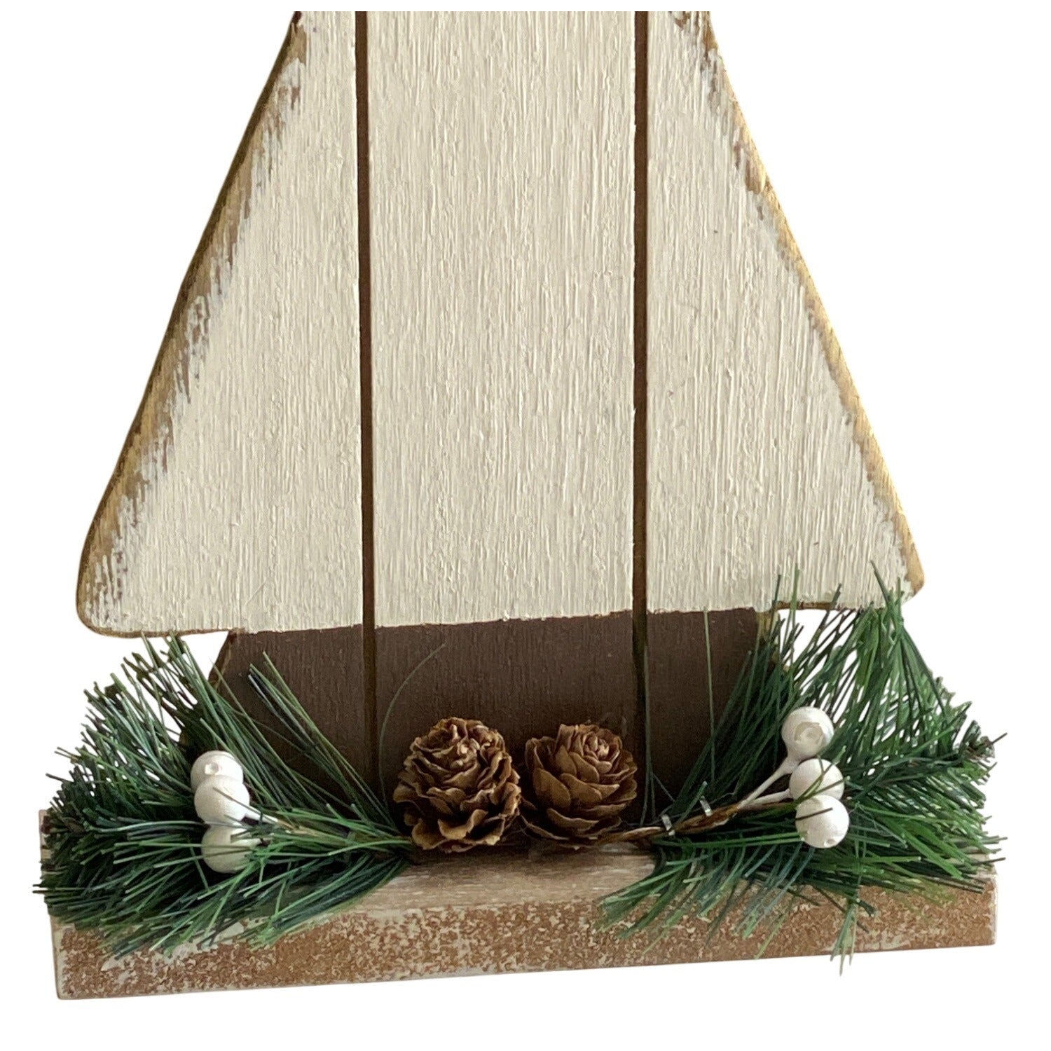 Rustic Wooden Christmas Tree Décor Pinecones & Greenery Holiday Display