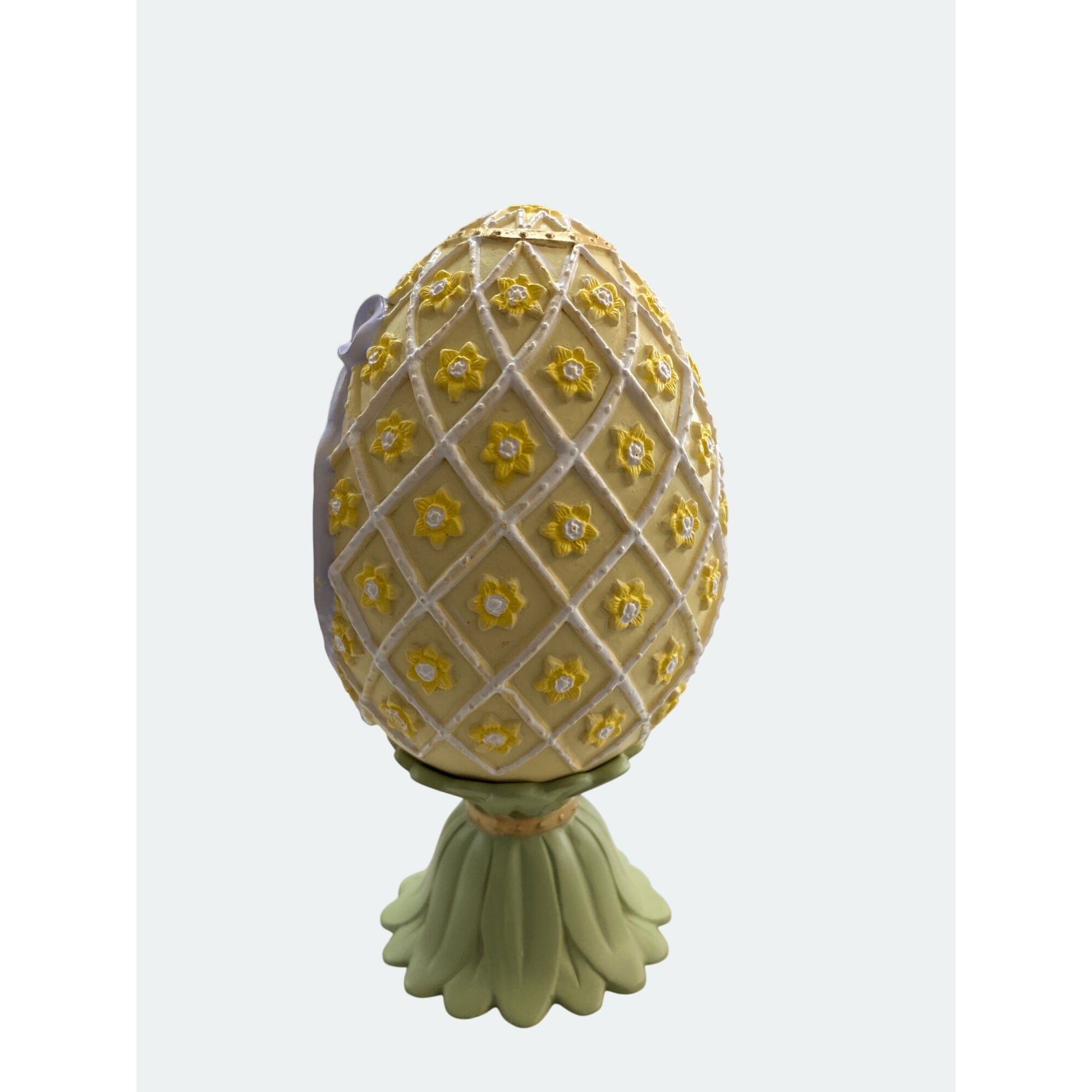 Seasons Treasures Egg Collection Floral Bouquet 1994 Decorative Yellow & Green Egg With Stand By M. Zagata