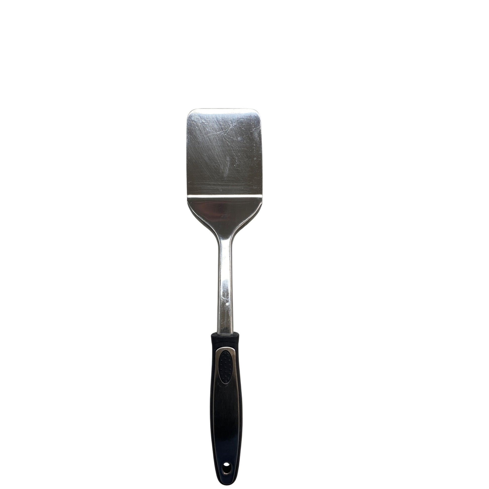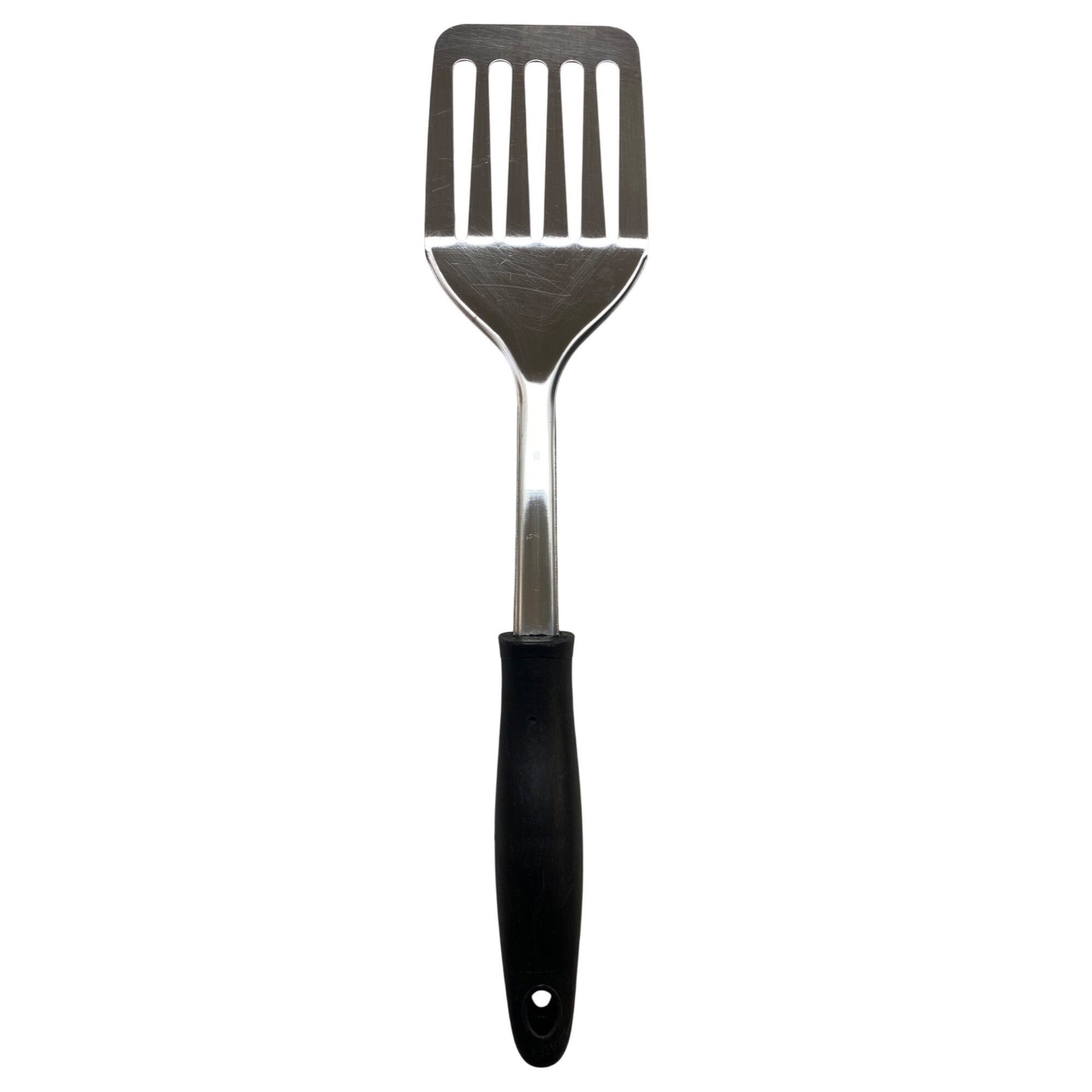 Upgrade your kitchen tools with this stylish stainless steel set featuring ergonomic black handles. Perfect for efficient cooking and serving needs.