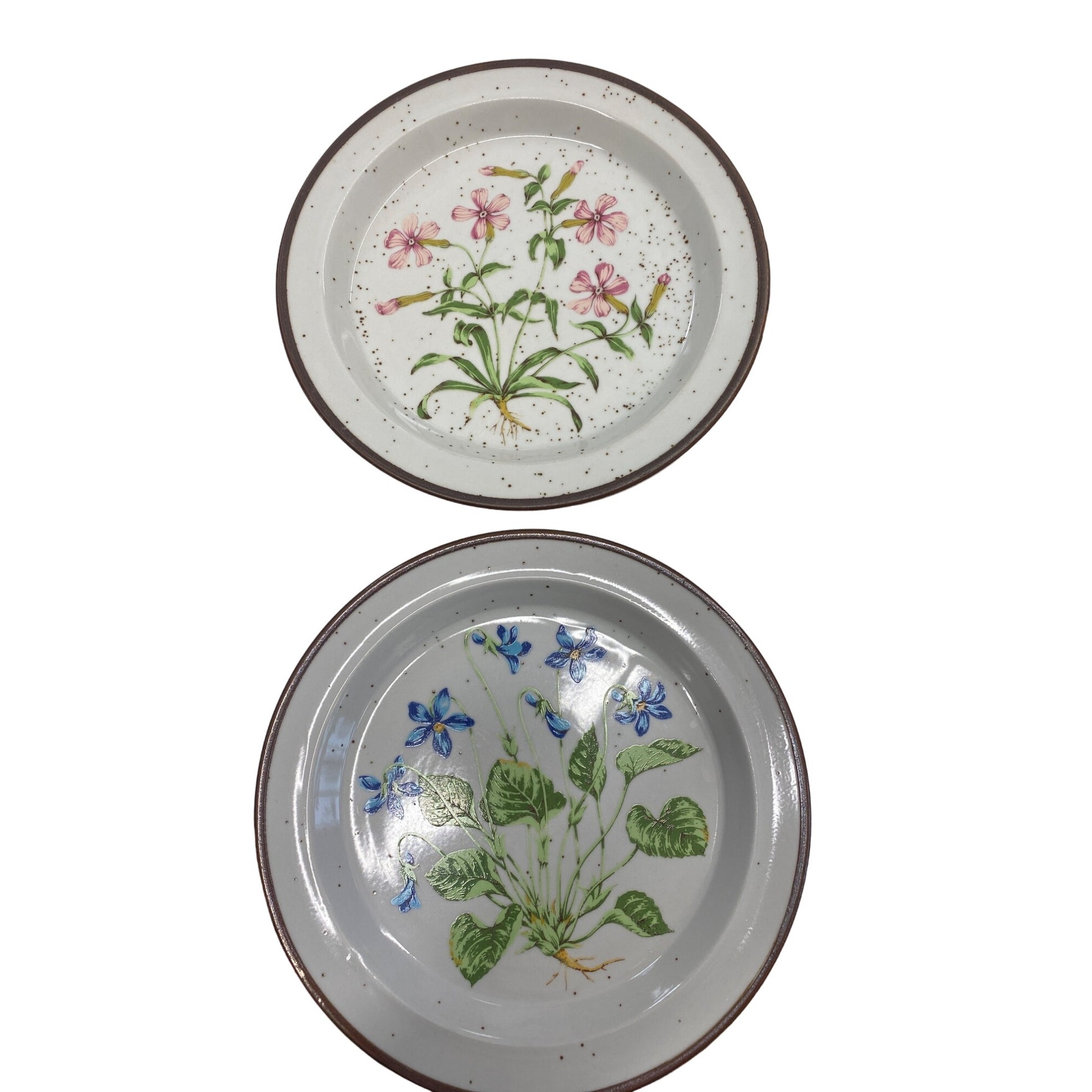 Set Of 2 Floral Print Plates Wild Pink & Violet No. 201 & 202 Japan Vintage