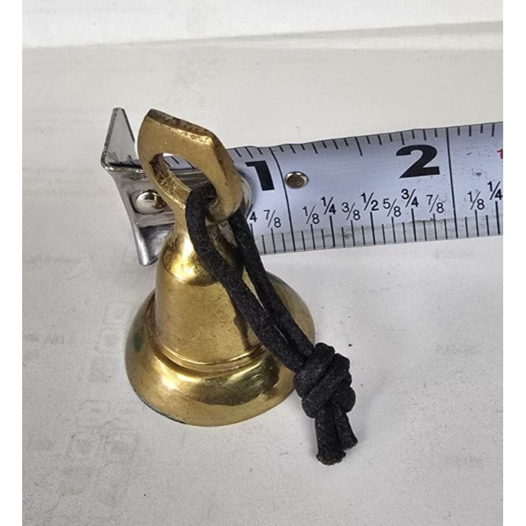 A timeless addition to your collection, this vintage brass hand bell features a sturdy black rope handle and a resonant tone. Ideal for decor or practical use.