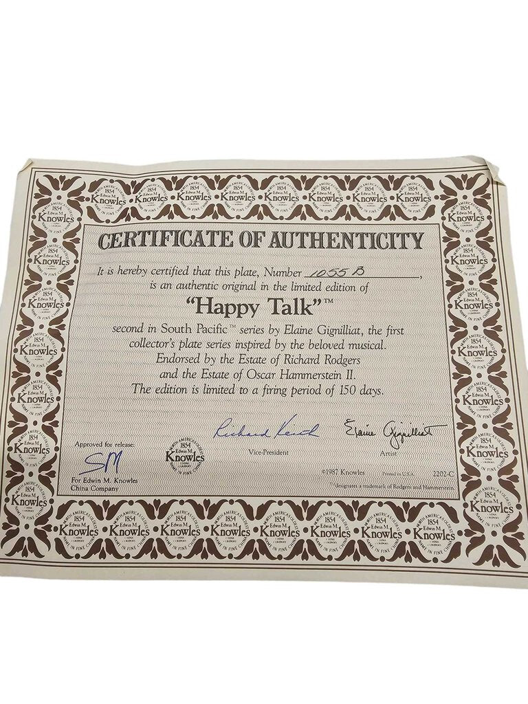 South Pacific "Happy Talk" Collectors Plate! 1987