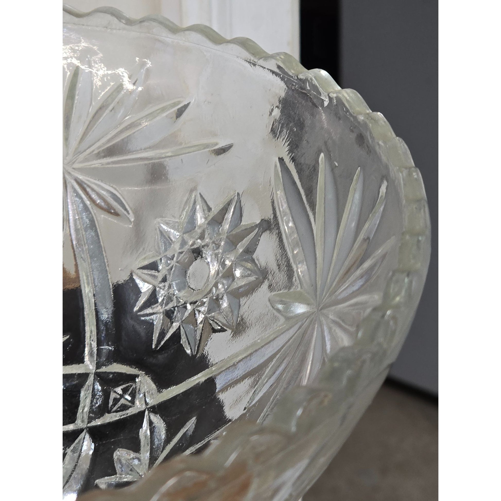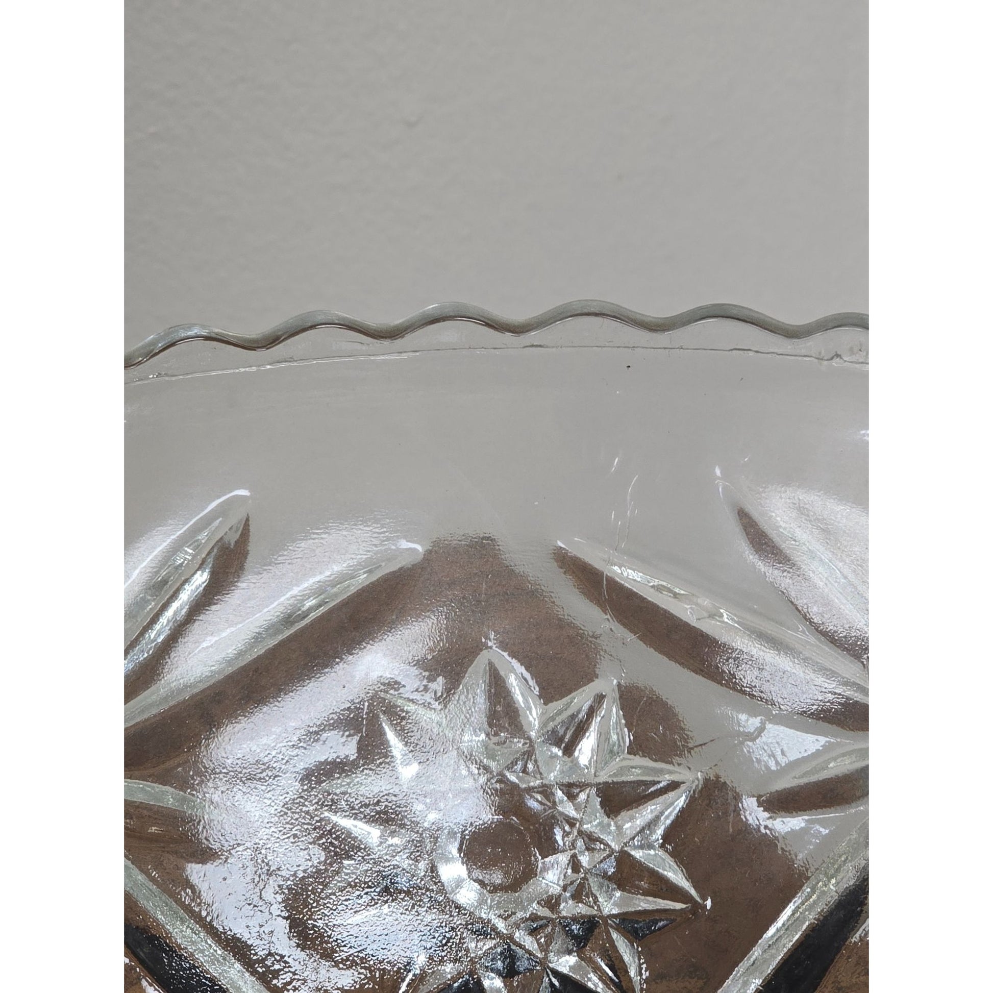 This vintage pressed glass bowl offers timeless elegance with its intricate floral design. It's a versatile piece for serving or as a decorative centerpiece, adding sophistication to any setting. Ideal for collectors of vintage glassware or anyone seeking to enhance their home decor.