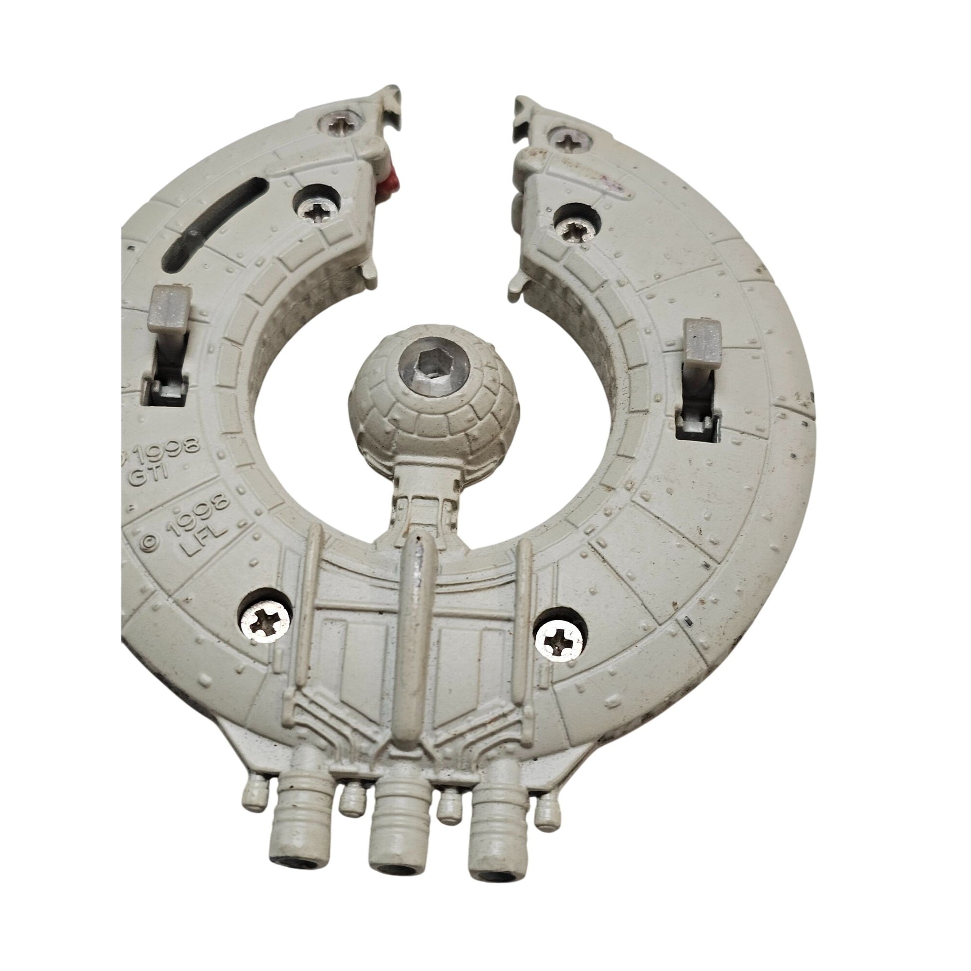 Own a piece of Star Wars memorabilia with this 1998 Federation Battleship toy. With intricate details and a sturdy design, it's ideal for collectors or Star Wars enthusiasts seeking to expand their collection. Display it proudly to showcase a classic from the legendary saga.