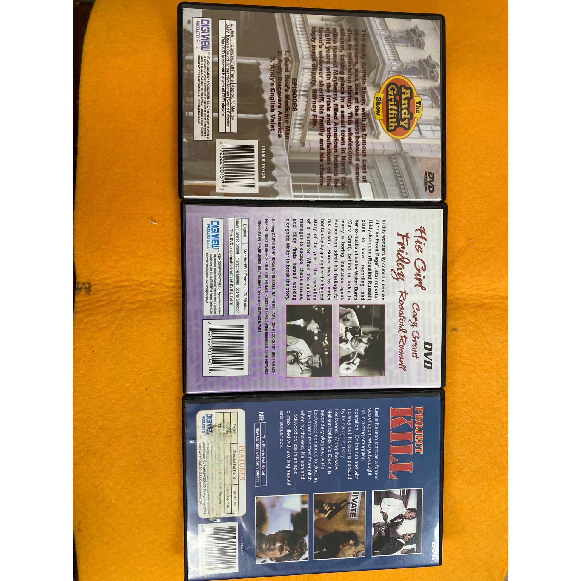 Immerse in timeless entertainment with these 3-DVD’s featuring beloved classics: "The Andy Griffith Show," "His Girl Friday," and "Product to Kill." Rediscover cherished TV moments and thrilling narratives, offering hours of nostalgic enjoyment. Ideal for collectors or classic film enthusiasts seeking quality content.