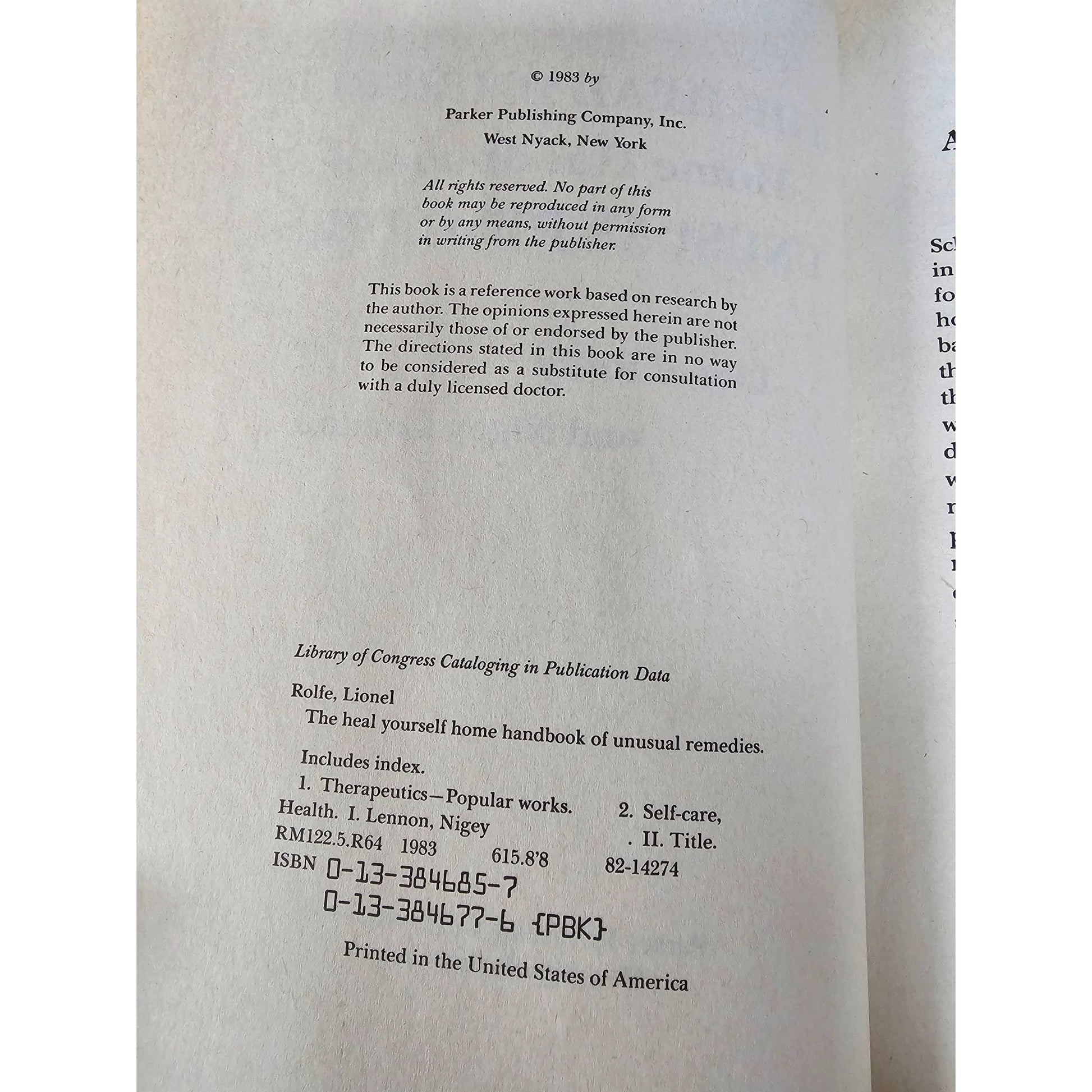 The Heal Yourself Home Handbook Of Unusual Remedies By Lionel Rolfe & Nigey Lennon