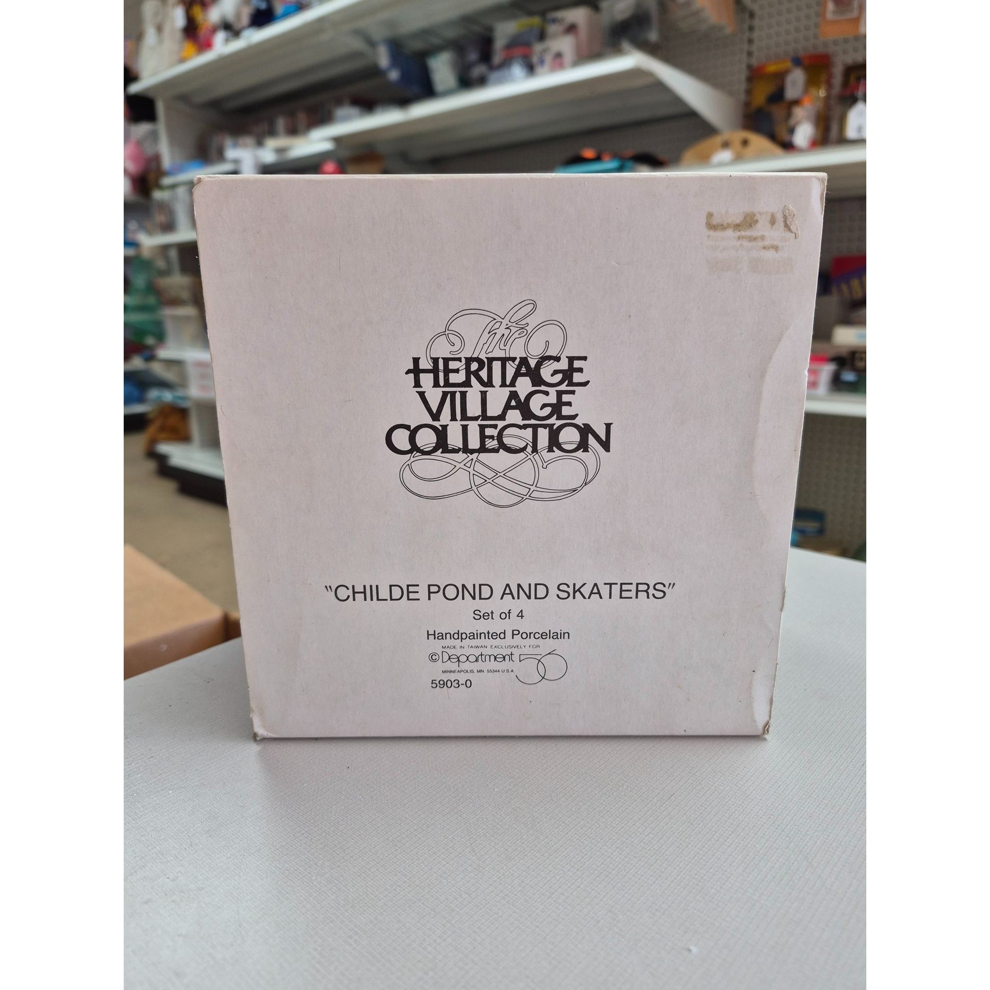 The Heritage Village Collection "Childe Pond And Skaters" Handpainted Porcelain Set Of 4 By Department 56
