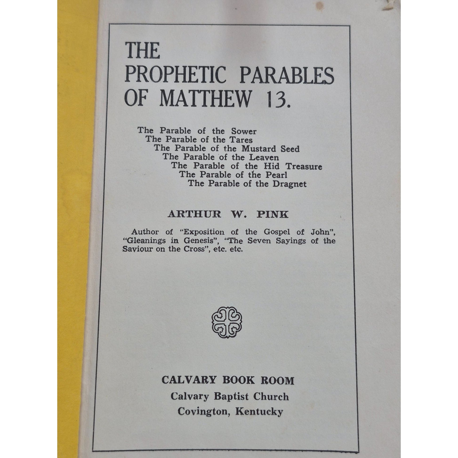 Dive into Arthur W. Pink's insightful interpretation of the prophetic parables from Matthew 13. This book offers a deep exploration into biblical teachings, providing readers with a greater understanding of spiritual truths. An essential addition to any theological collection, this edition is a testament to Pink's profound biblical insight.