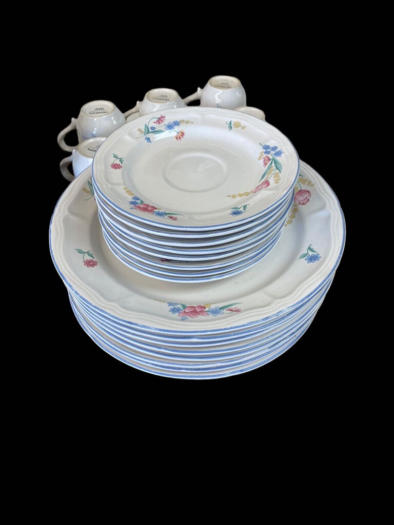Used, Wear In Center Of Plates Shown In Pictures, 8 Large Plates, 6 Medium Plates, 8 Tea Cup Plates, 8 Bowls, 6 Tea Cups