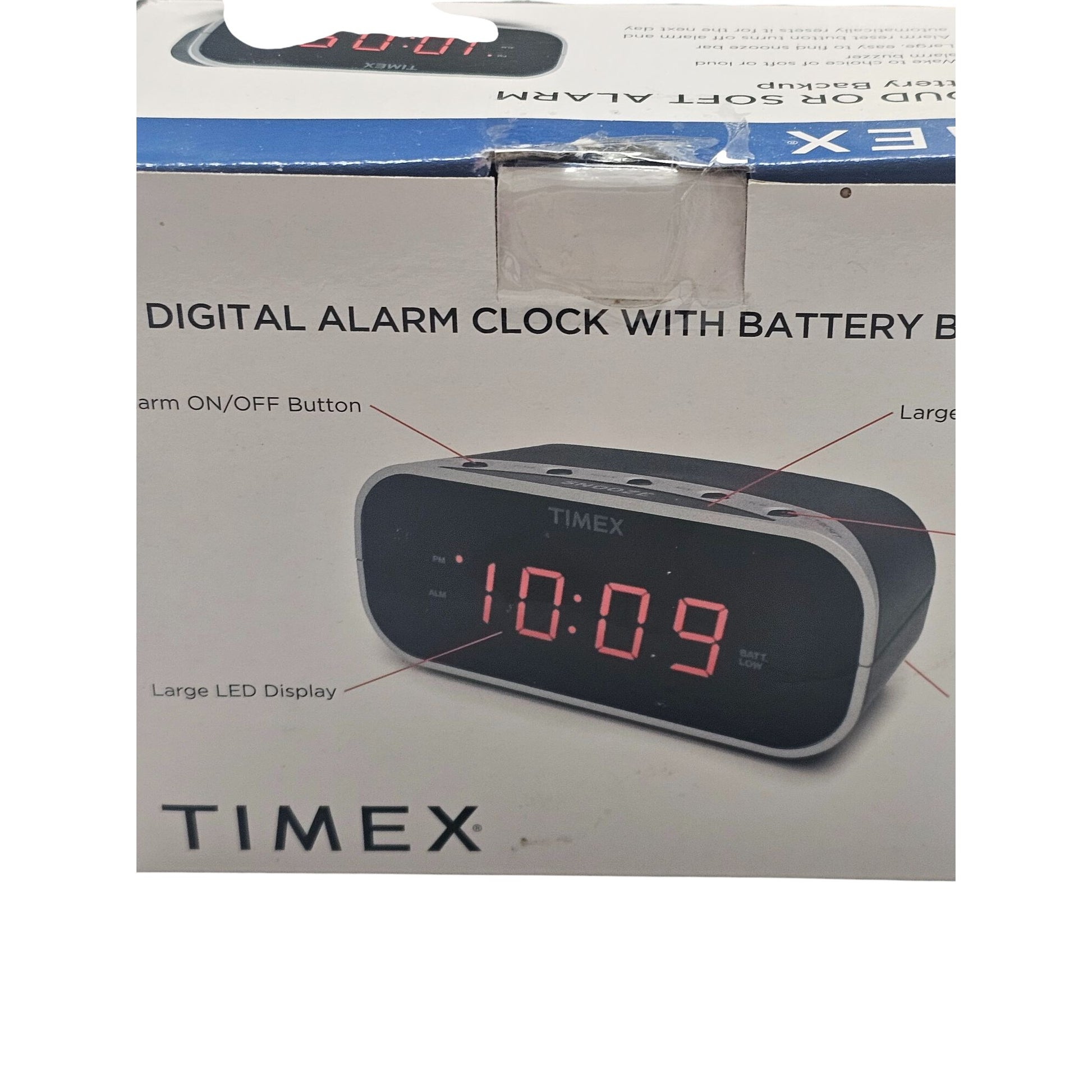 Wake up your way with this reliable Timex alarm clock. Choose between soft or loud alarms and enjoy a large, easy-to-use snooze button. Battery backup ensures settings are saved even during power outages, and the bright LED display keeps the time visible day or night.