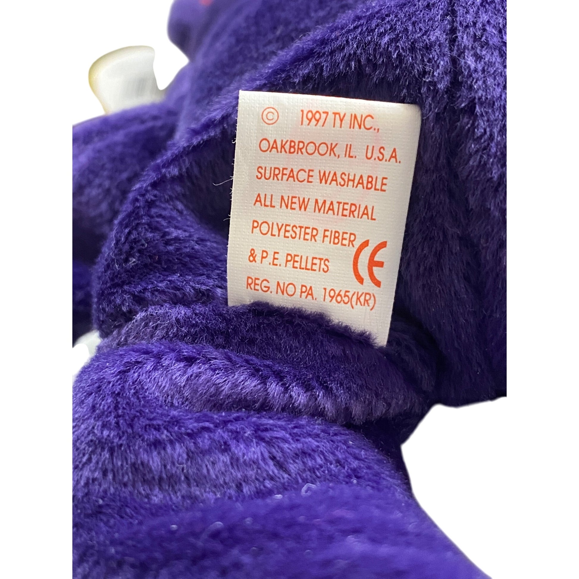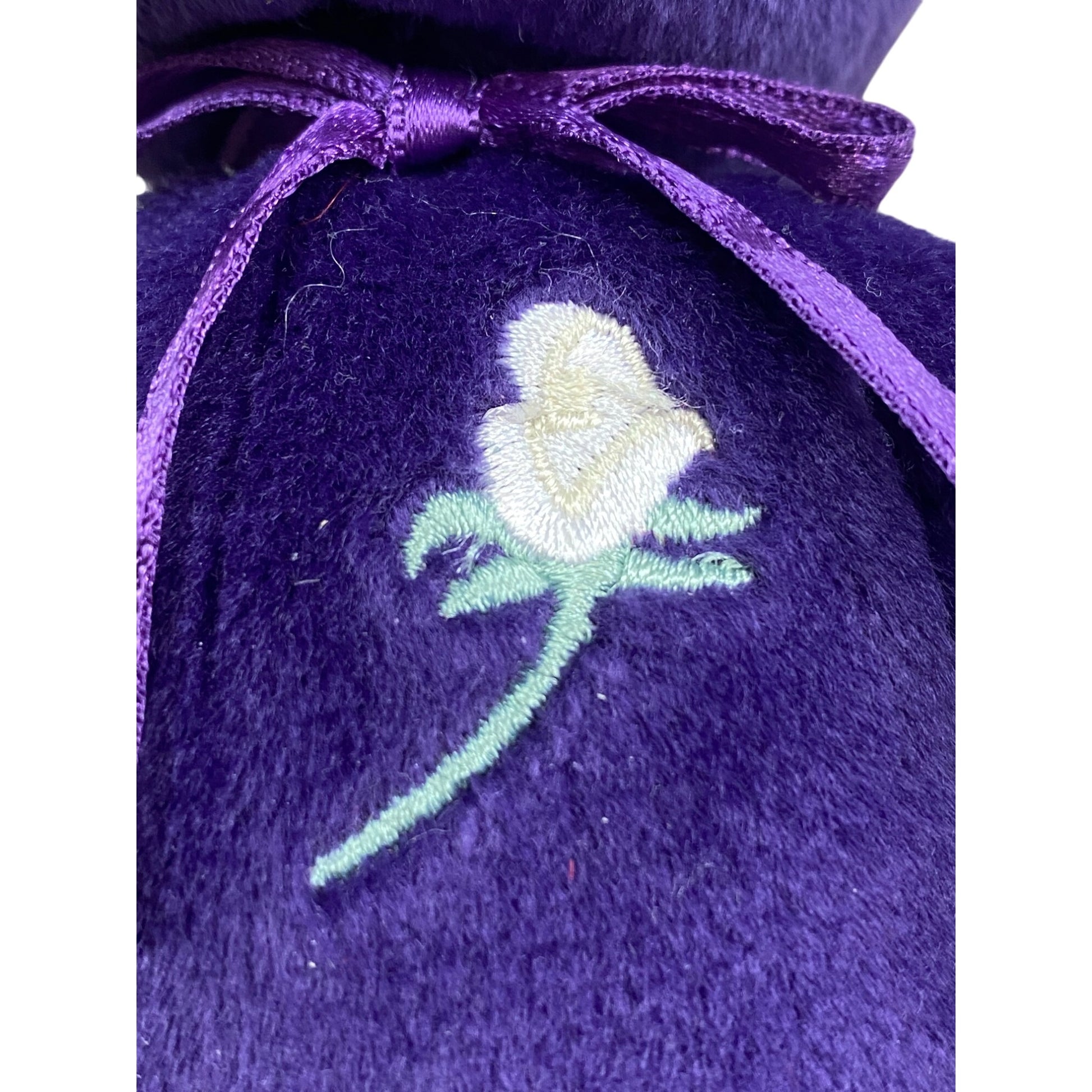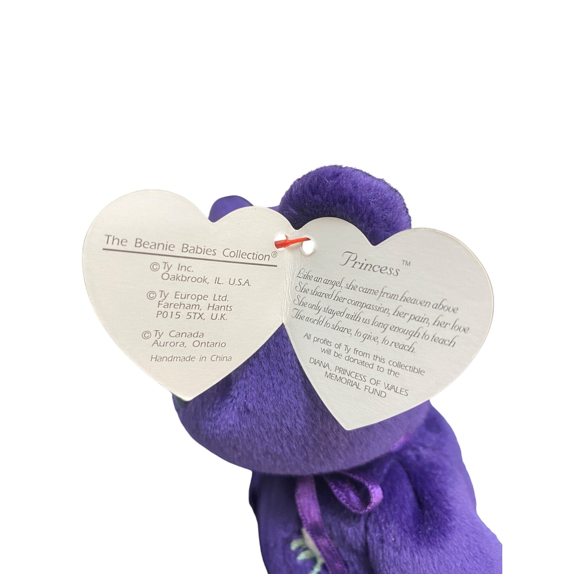 This Princess Diana Beanie Baby is a cherished collectible, crafted with plush polyester fiber. Its deep purple hue and floral embroidery add elegance, making it a timeless keepsake for any collection.