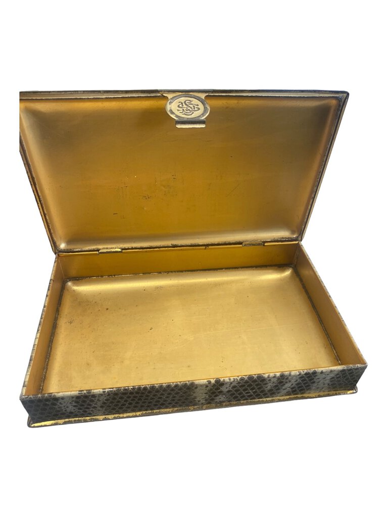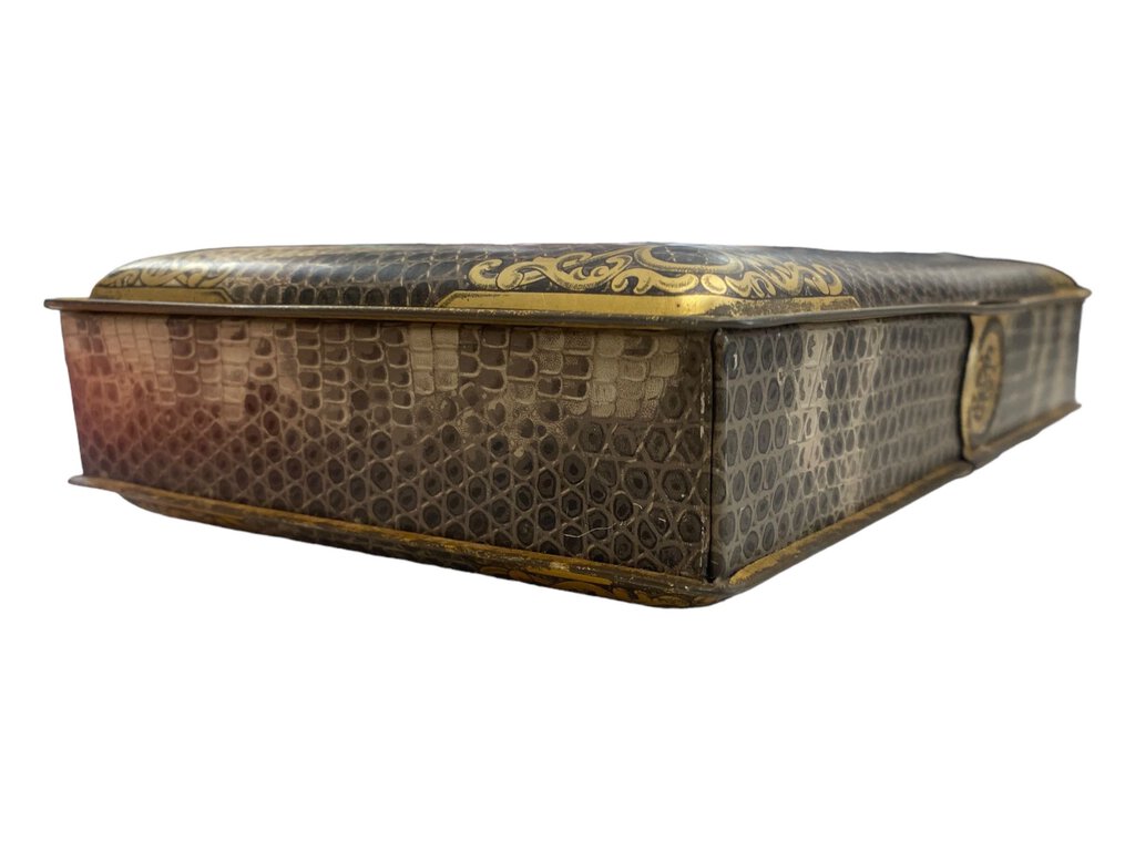Victorian Tin Candy Box Latch Portrait Snakeskin Pattern 1800s Trinket Candy