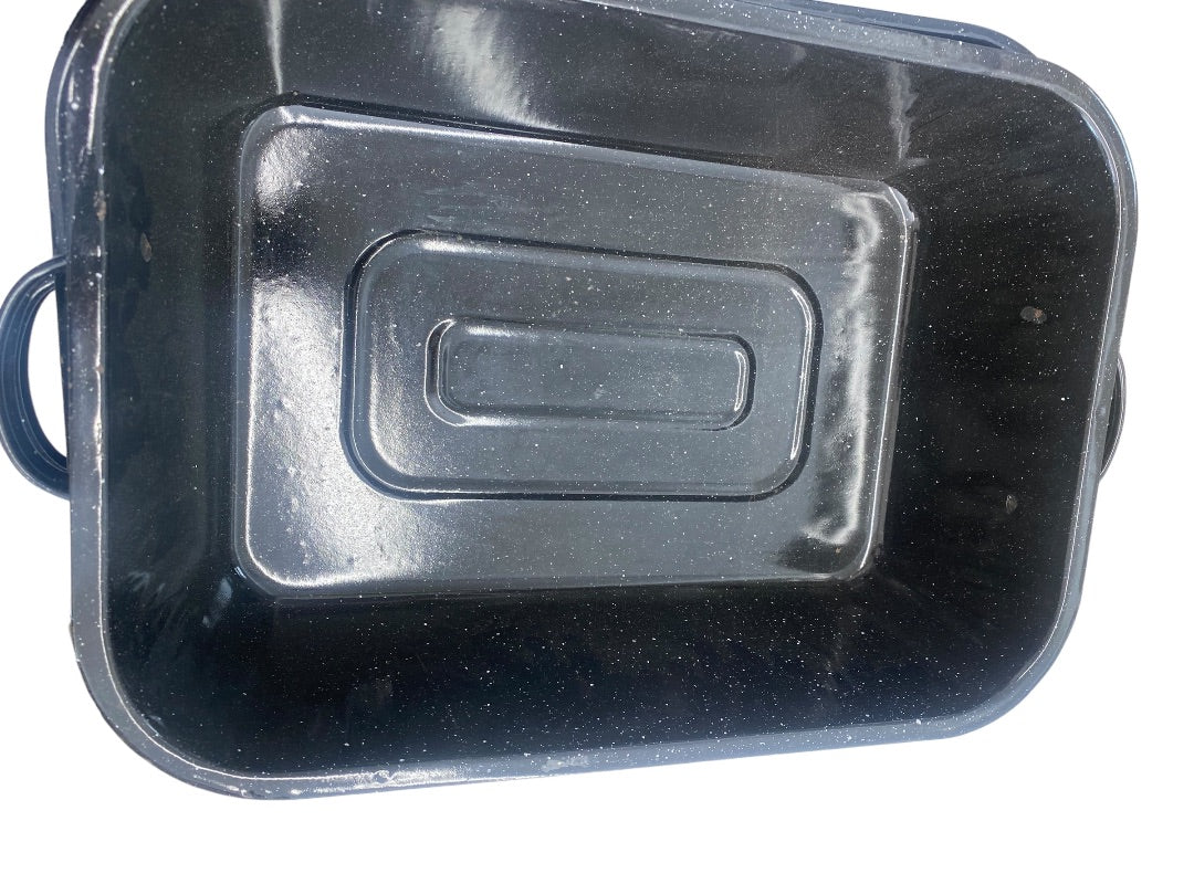 Vintage 16 in Rectangle Roaster Black Specked Enamel with Lid