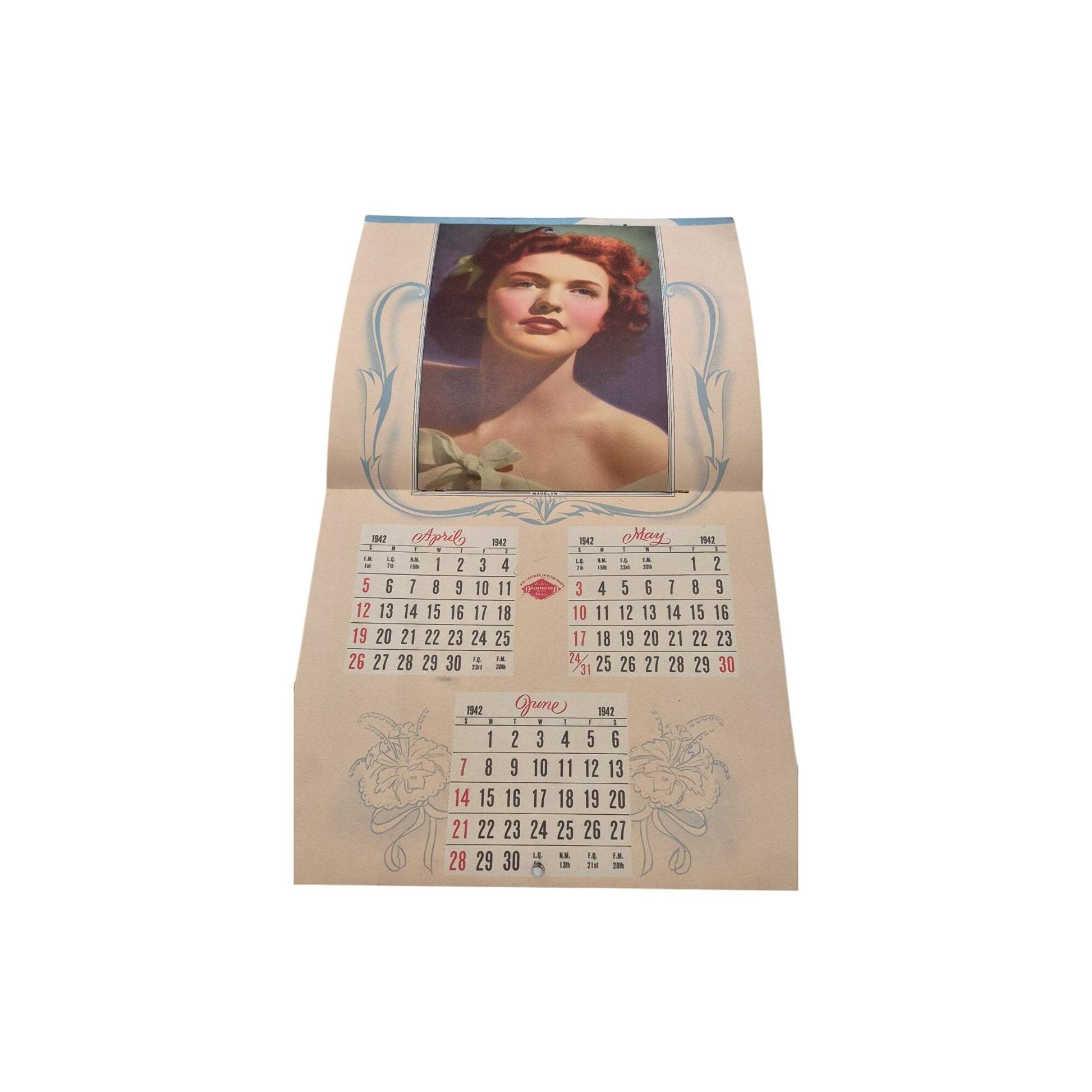 Add a nostalgic touch to your collection with this 1942 vintage calendar featuring charming artwork and illustrations. A perfect retro display piece.