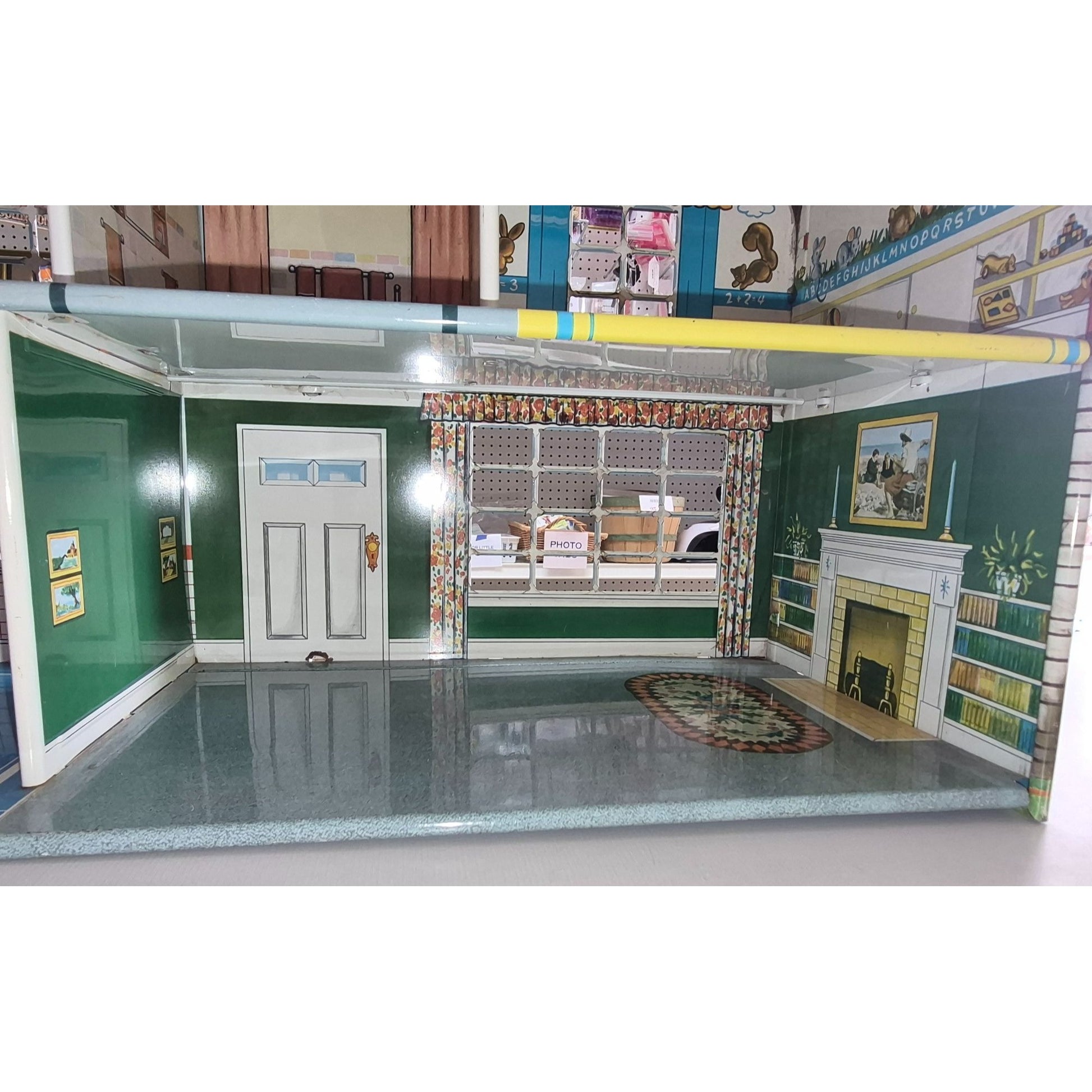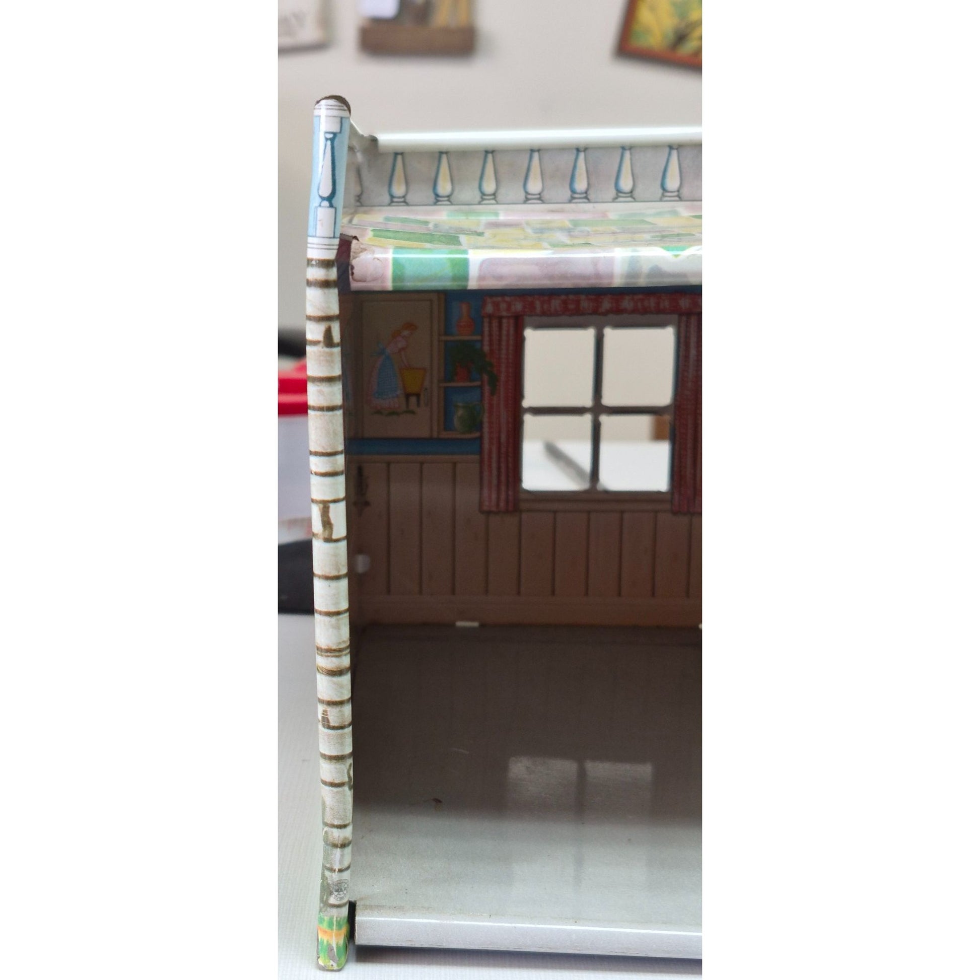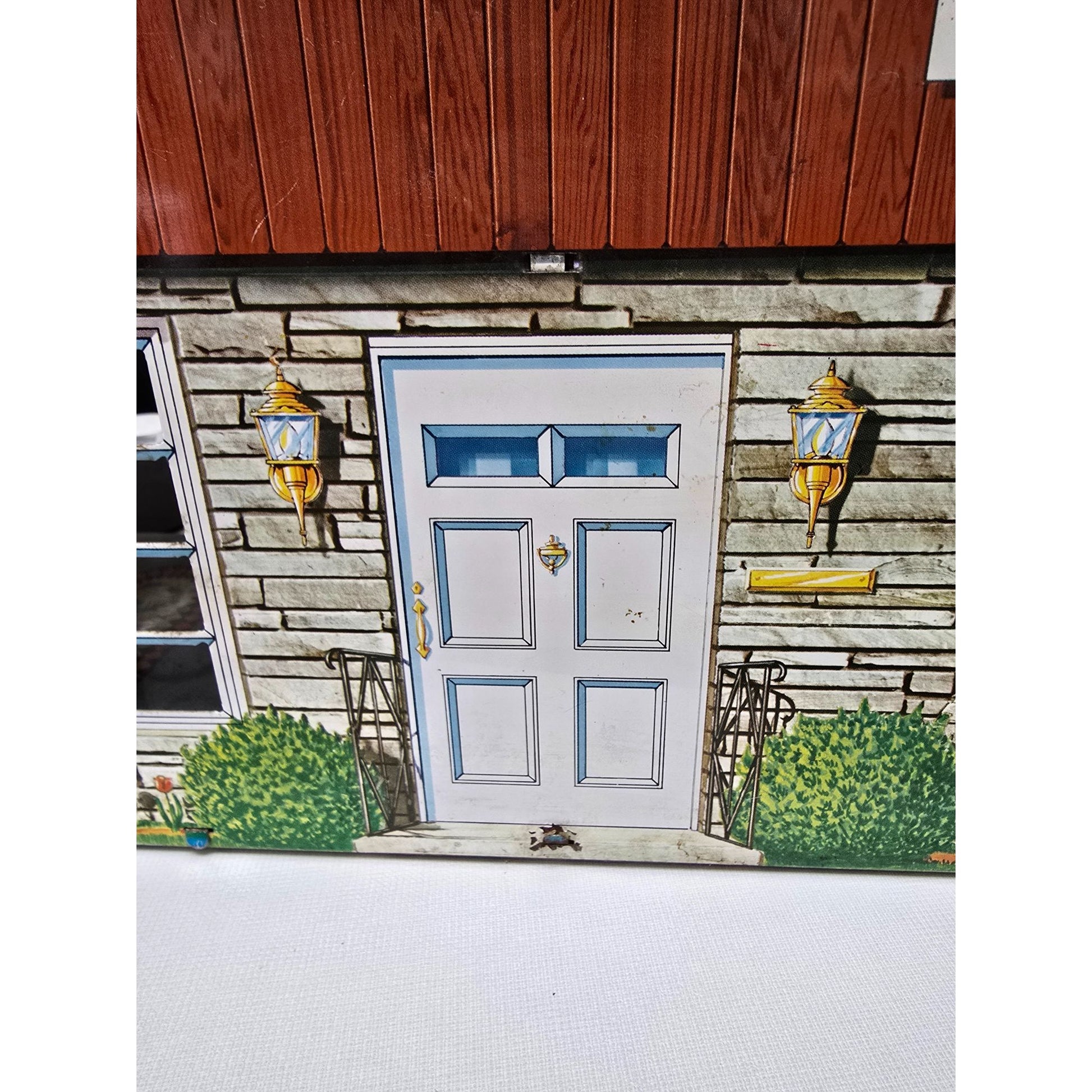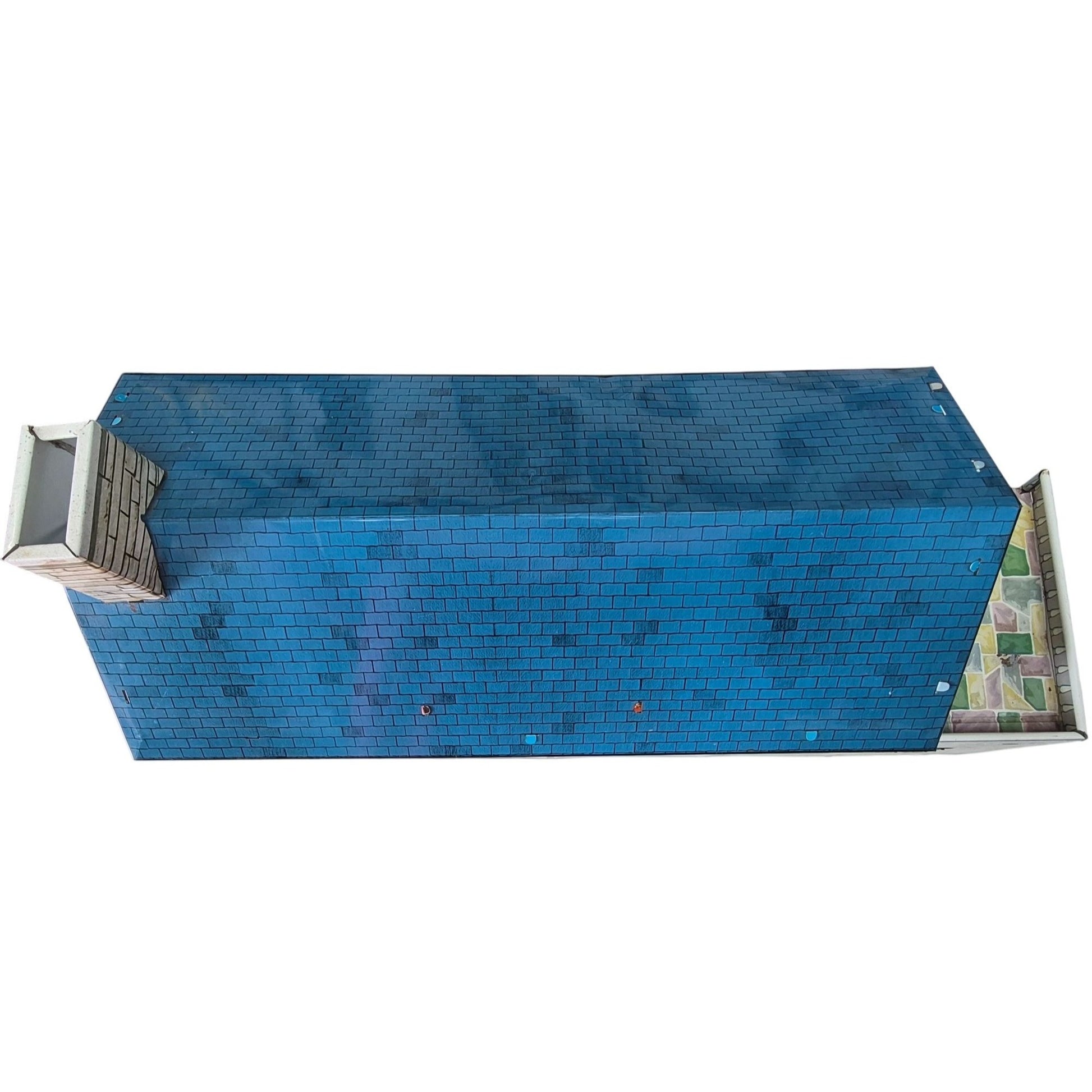 Own a piece of history with this delightful 1950s Marx litho tin dollhouse. Its charming design, with intricate details and a spacious patio, provides hours of imaginative play. A wonderful addition to any vintage toy collection, this dollhouse offers a glimpse into a bygone era of craftsmanship and design.