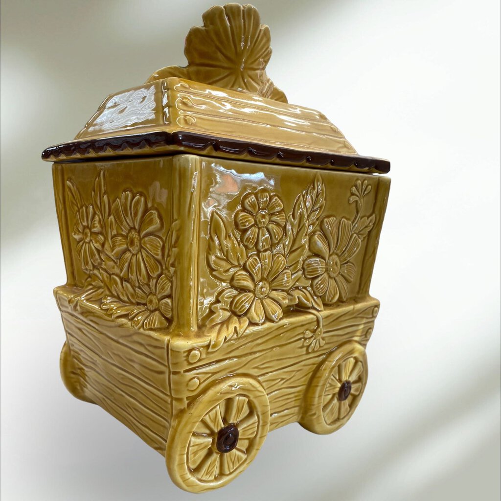 Vintage 1970's Fred Roberts Company Cookie Jar, Flower Wagon w/ Daisies
