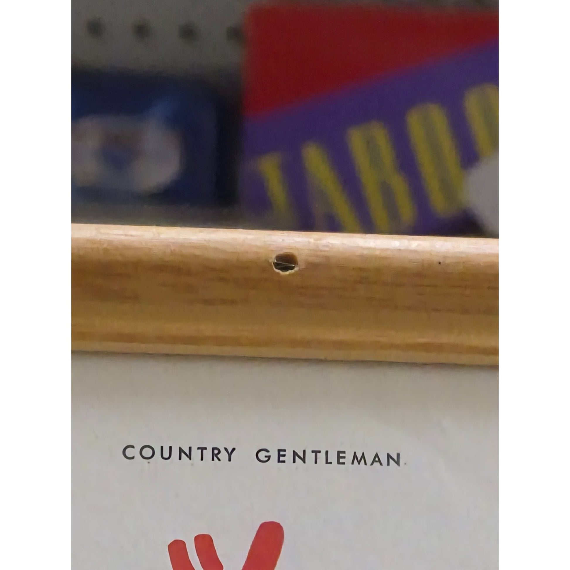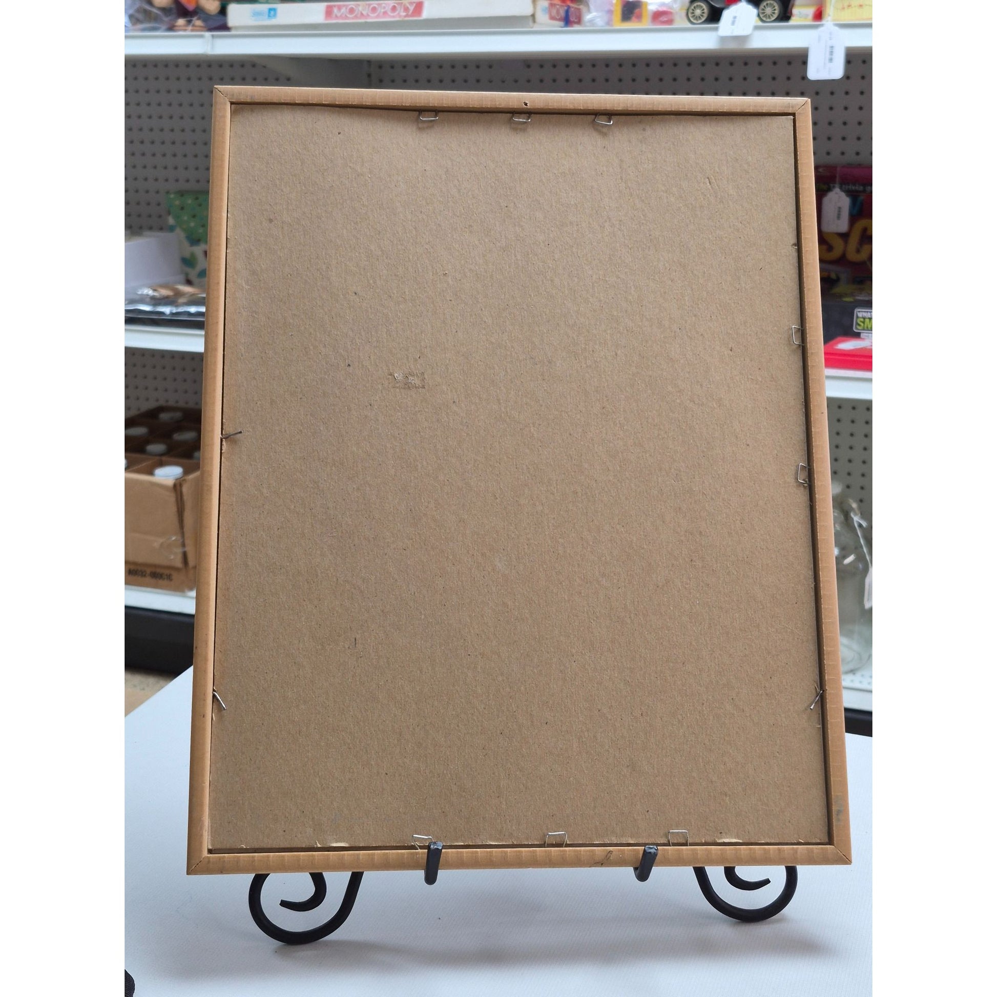 The frame has small holes, adding to its vintage character. Frame measurements are approximately 15 inches by 12 inches.