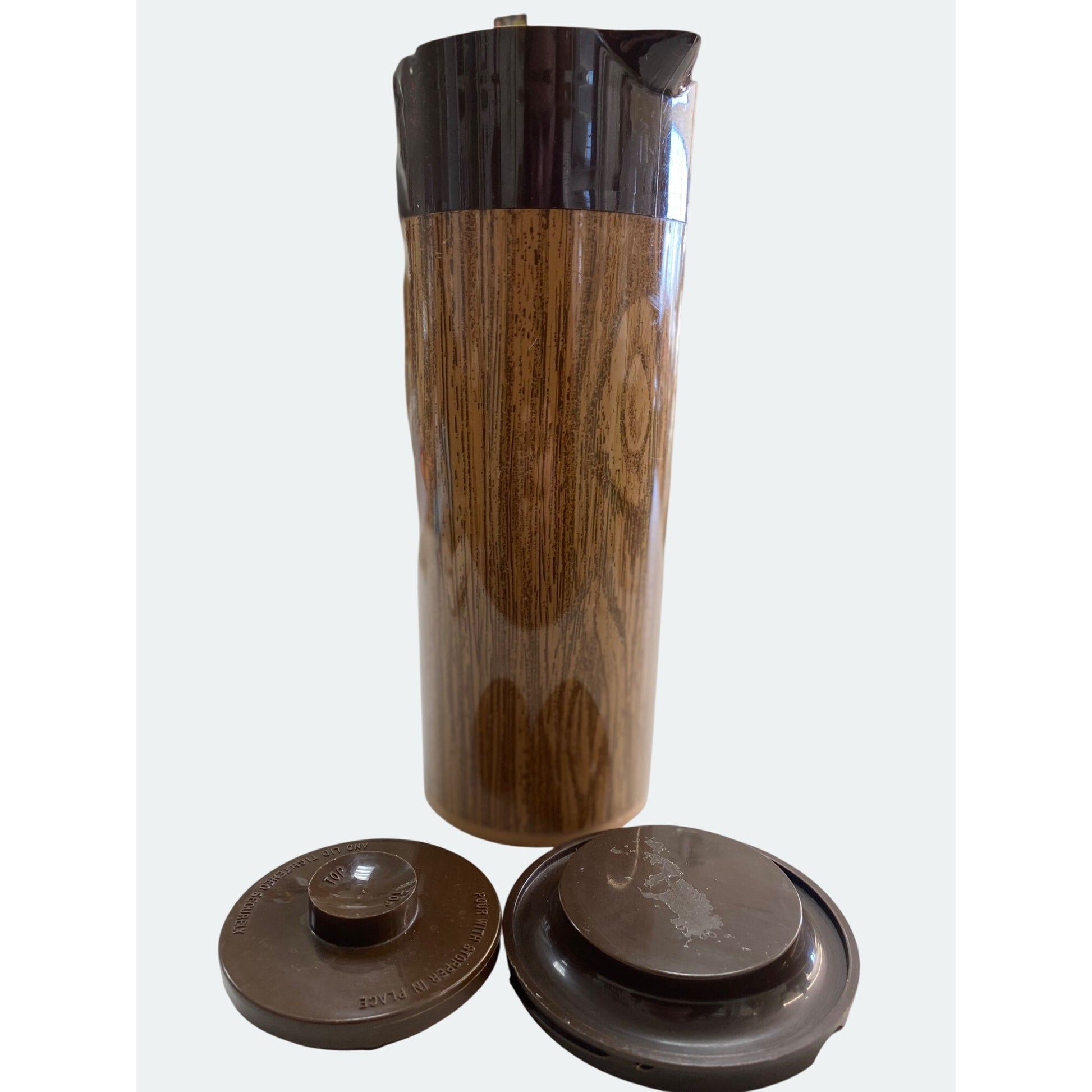 This Aladdin Beverage Butler combines functional vacuum insulation with a vintage woodgrain aesthetic. A durable and stylish choice for serving hot or cold beverages.