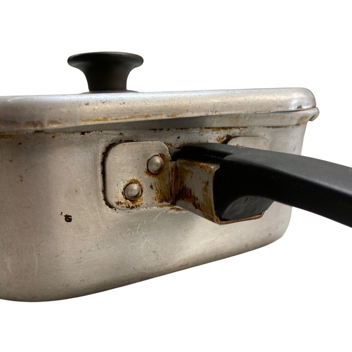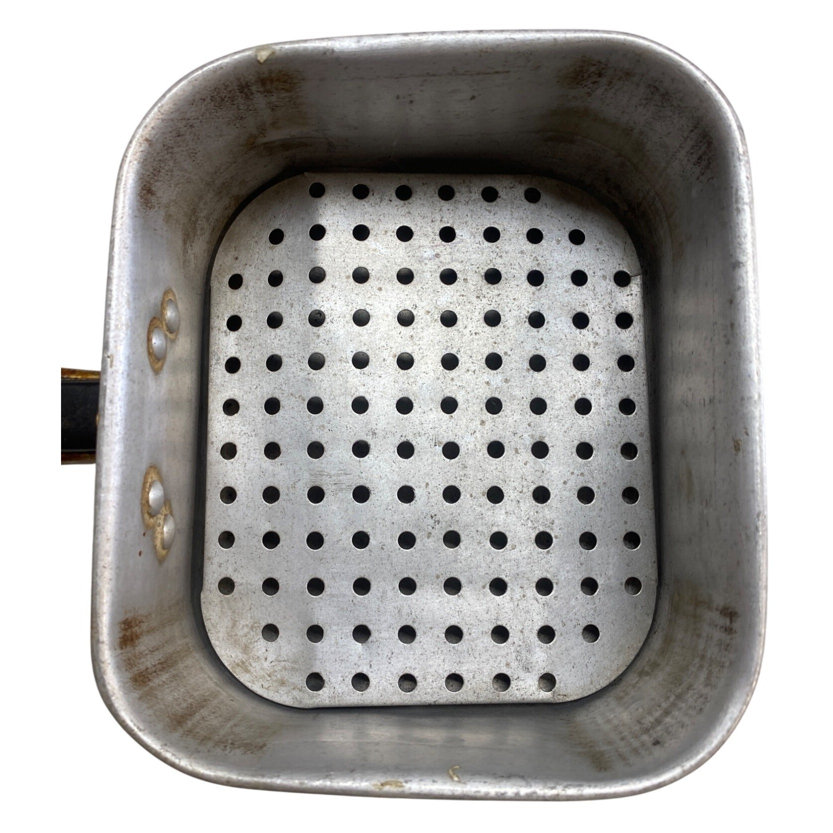 This vintage aluminum saucepan, complete with a lid and steamer insert, offers the perfect combination of style and functionality for your kitchen. Aluminum construction ensures even heat distribution, while the included steamer insert allows versatile cooking options. An excellent addition to any retro or vintage-themed kitchen collection.