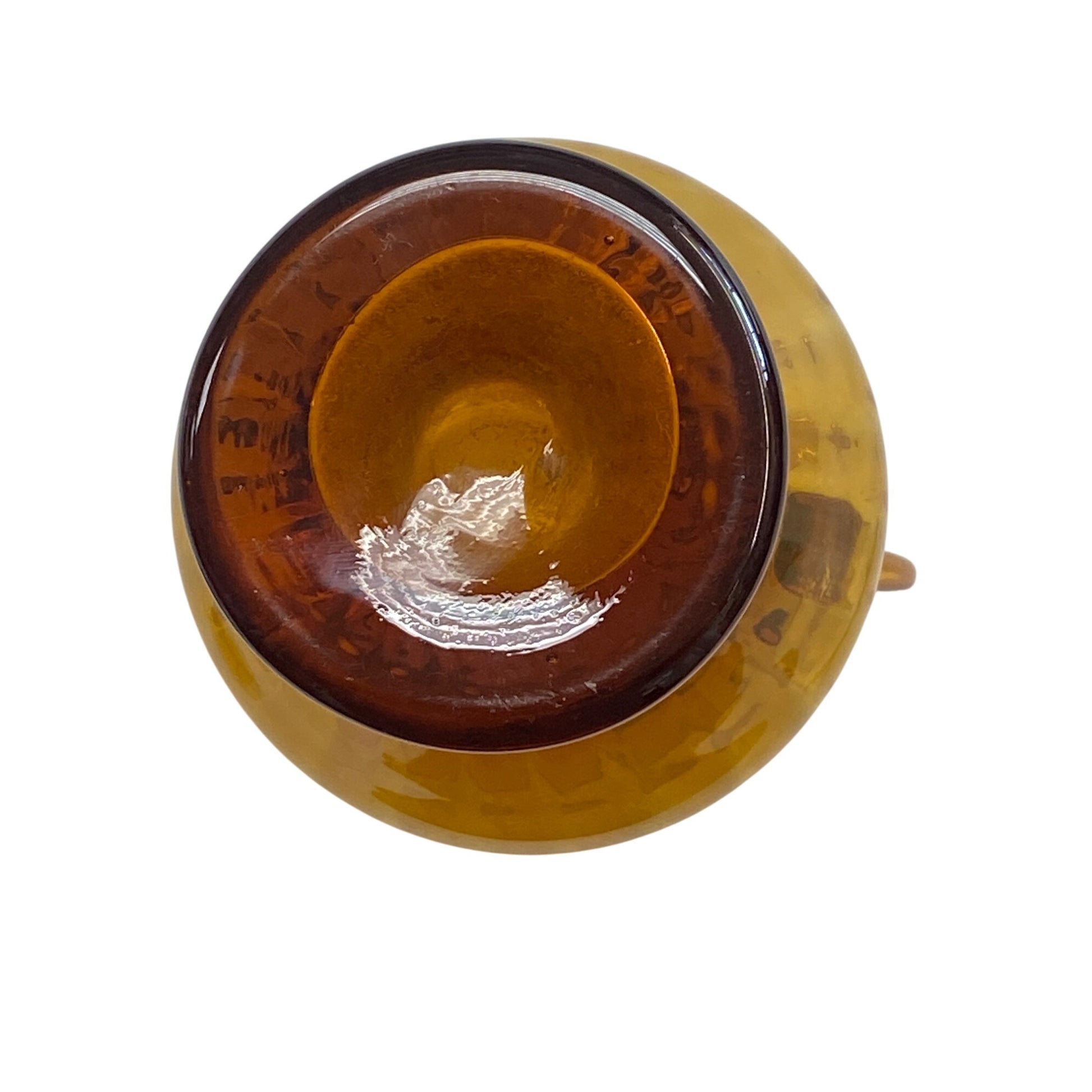 Vintage Amber Glass Vase With Double Handles & Flared Neck