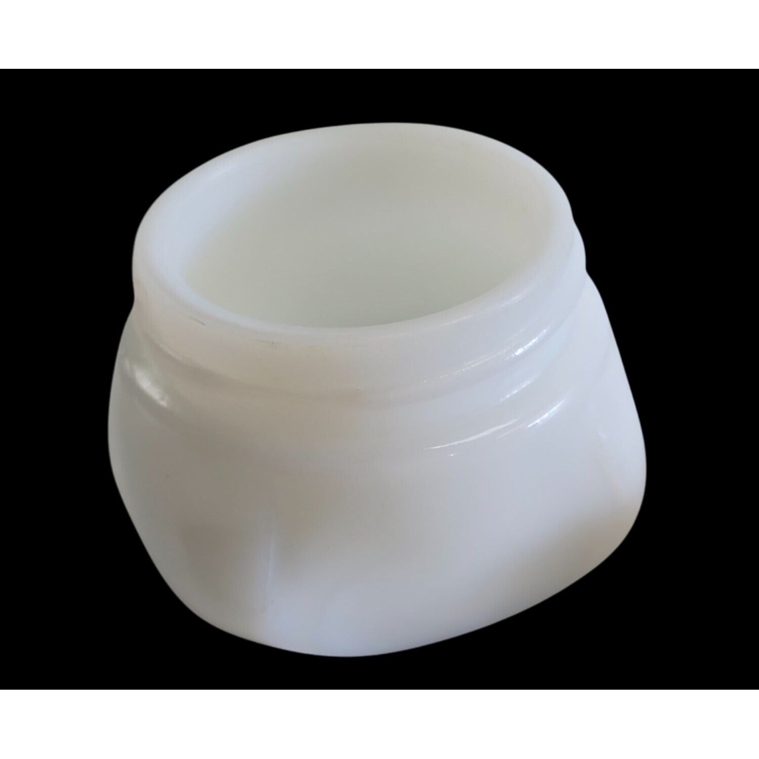 Elevate your vanity collection with this exquisite vintage Avon jar. Crafted from milk glass and adorned with a celestial-inspired lid, it serves as a stylish storage solution for your beauty essentials, blending functionality with timeless elegance.