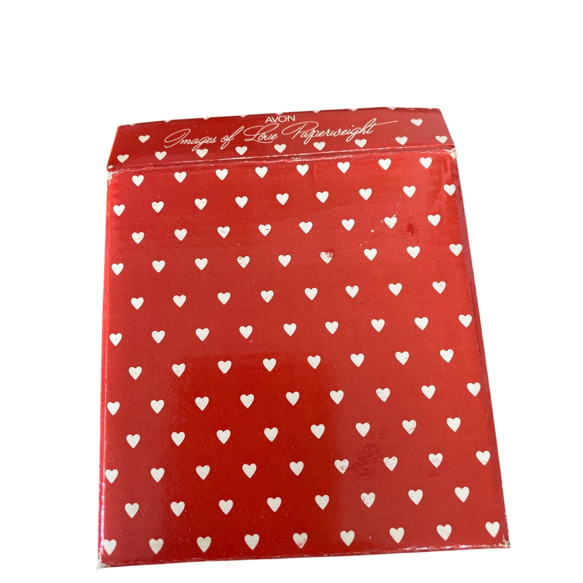Vintage Avon Heart-Shaped Clear Paperweight With Red Velvet Backing & Inspirational Quote