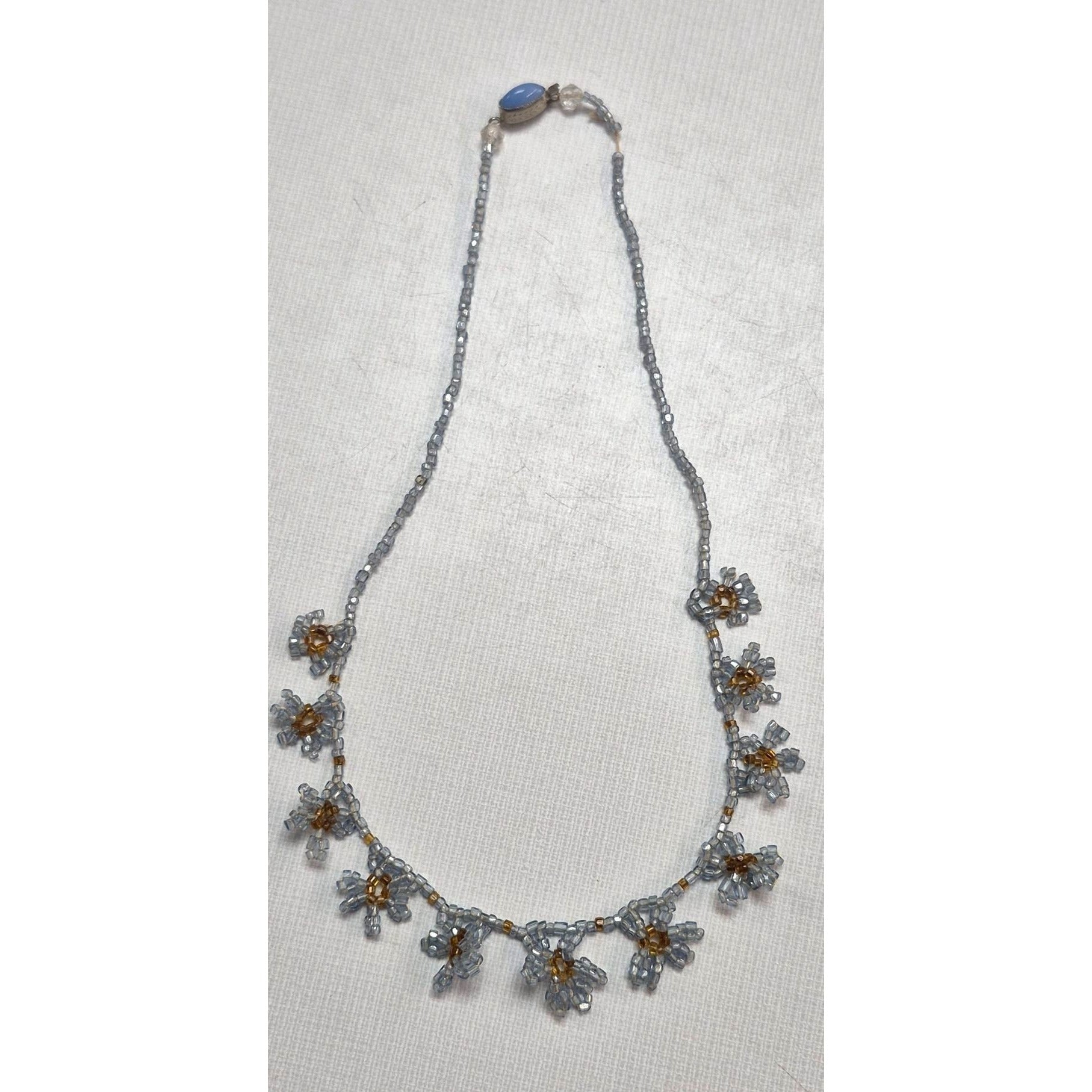 Vintage Beaded Floral Necklace Gray & Amber Seed Beads