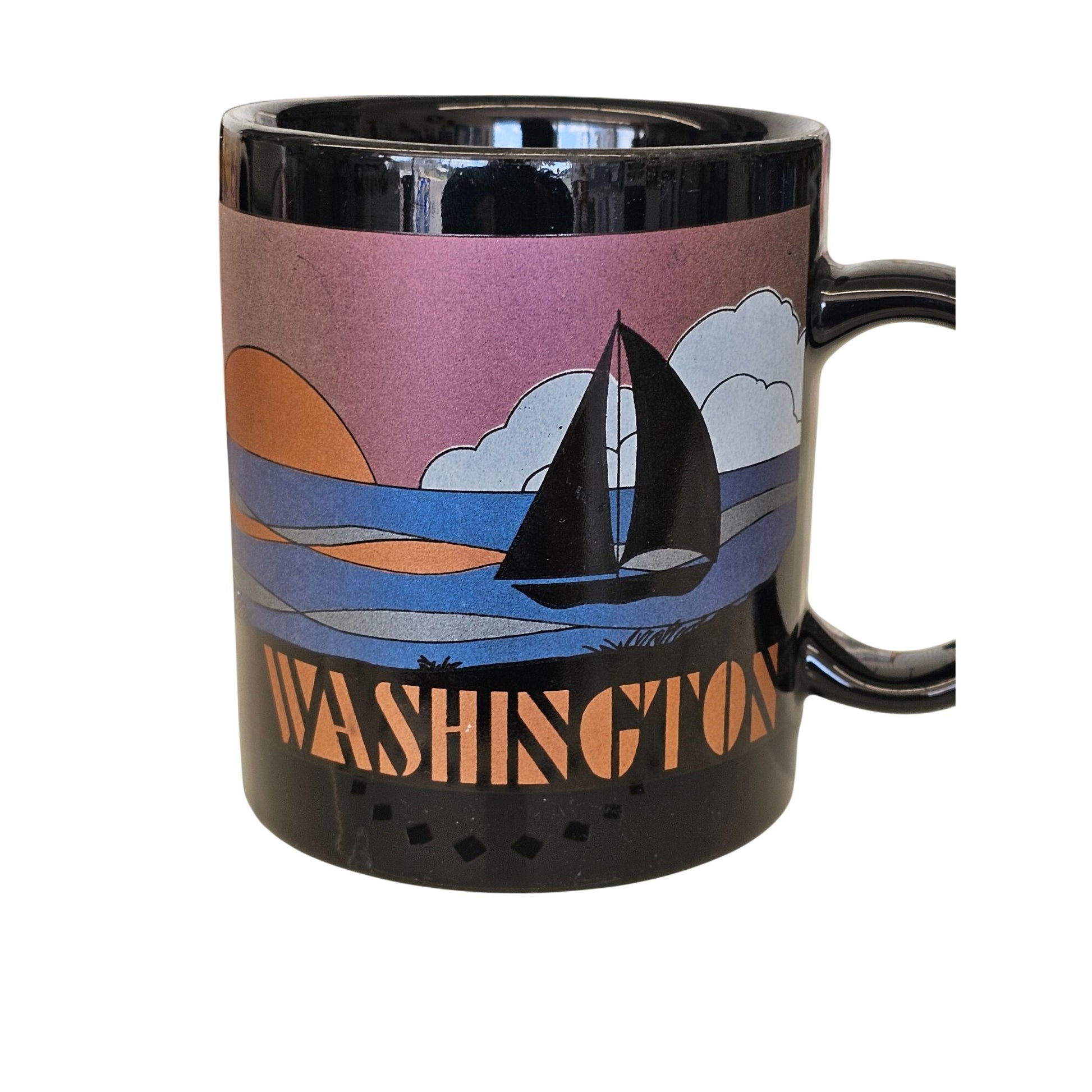 Vintage Black Ceramic Washington Mug With Sailboat & Sunset Design