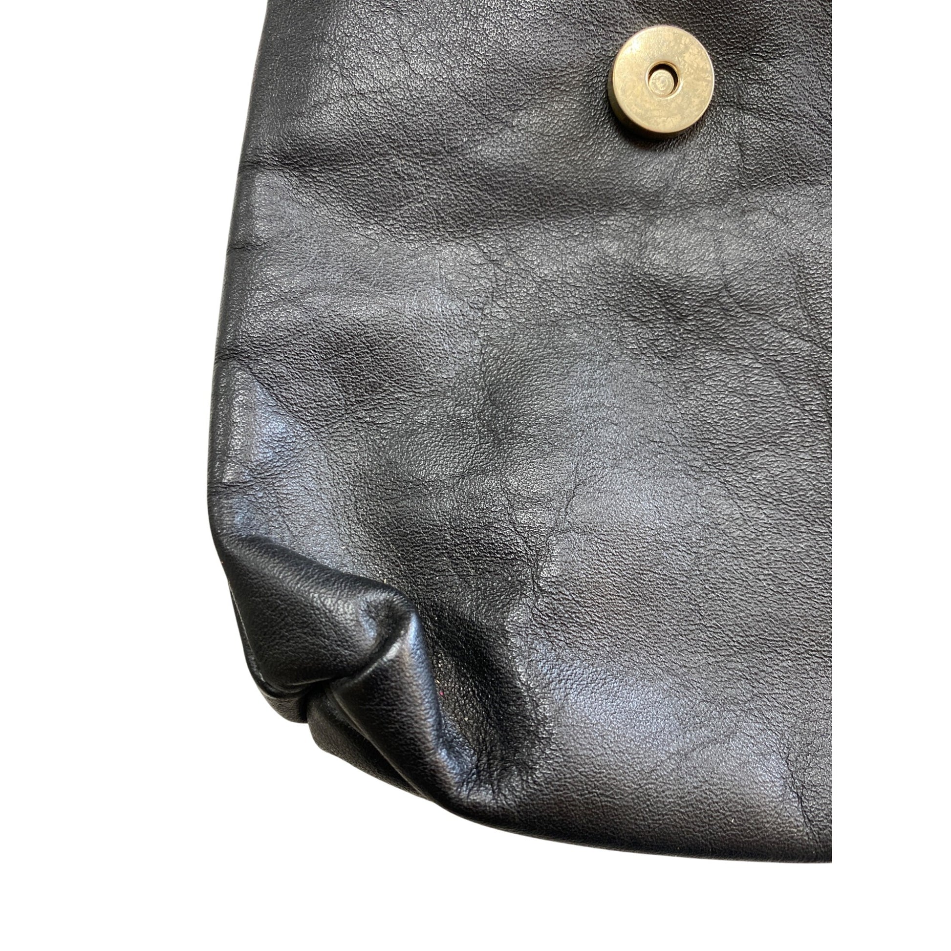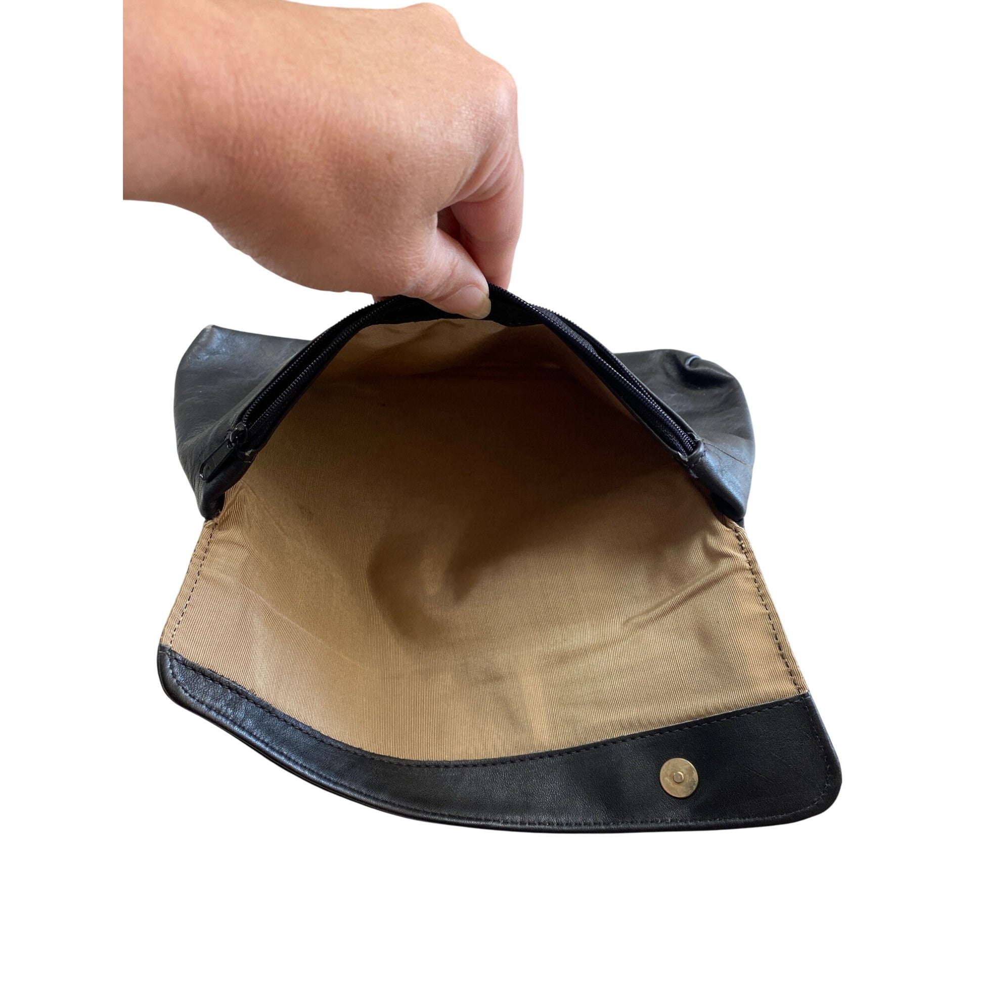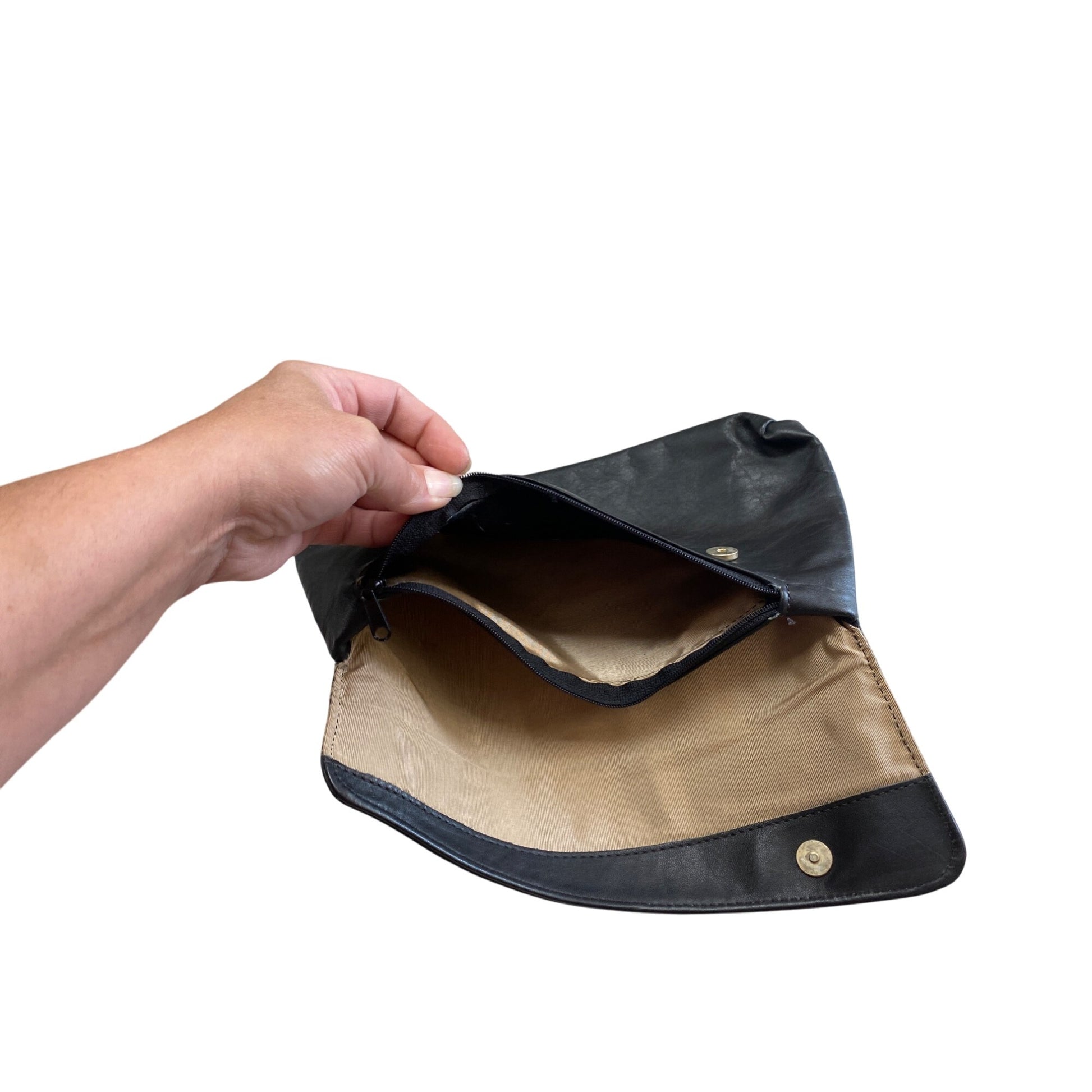 Vintage Black Soft Leather Foldover Clutch Purse With Magnetic Snap Closure & Inner Zip Pocket