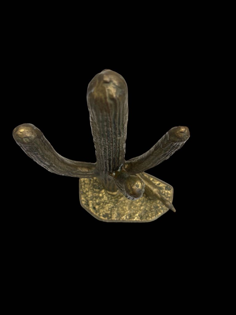 Vintage Brass Saguaro Cactus and Roadrunner Statue from The Thrift Shop Turtle Lake, stands 10 inches tall. Exquisitely crafted from brass, it adds a touch of Southwest charm to any space.