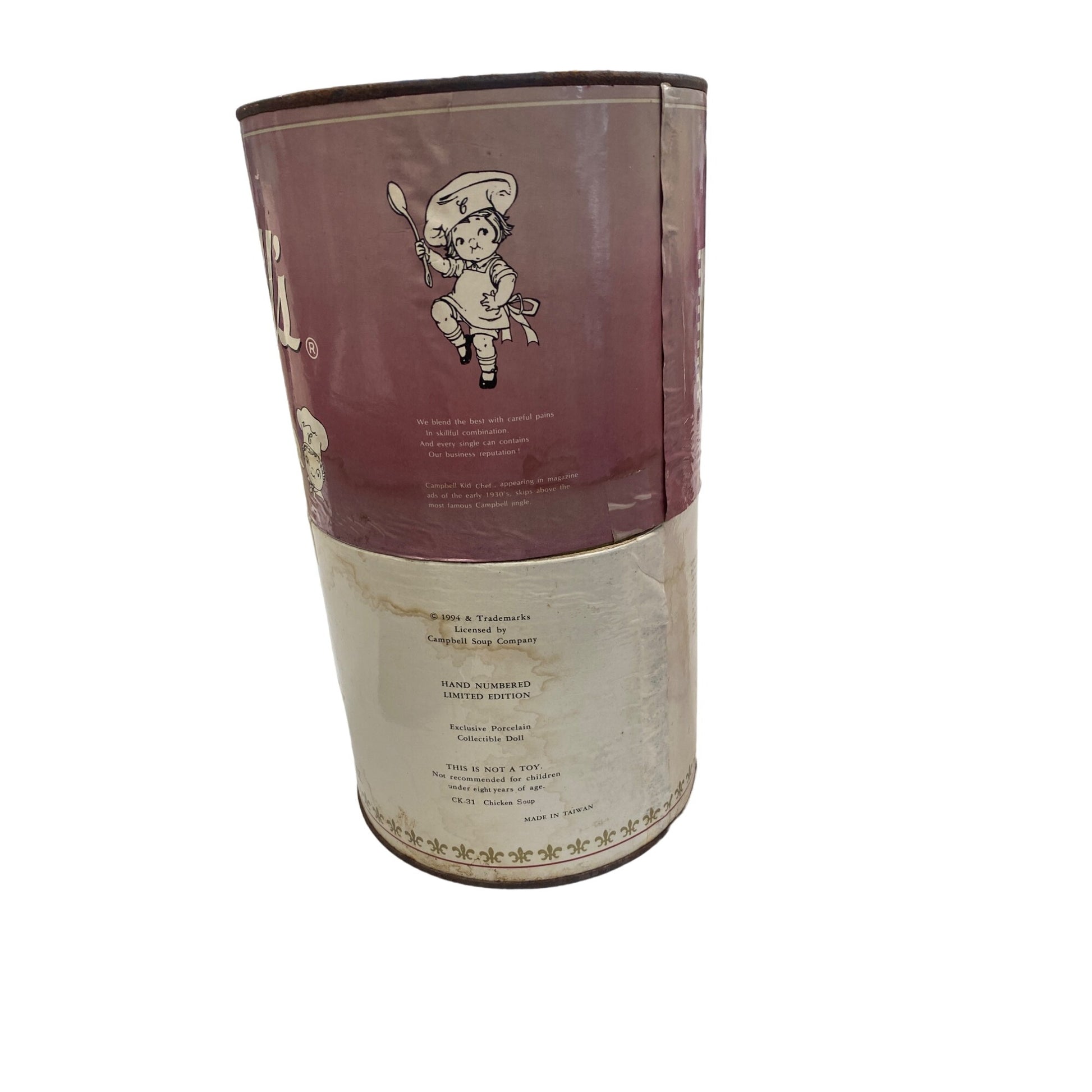 This delightful vintage Campbell's Soup doll is a charming addition to any collection. With her quaint straw hat and cheerful gingham dress, she embodies nostalgia and warmth. Her detailed features and quality craftsmanship make her a standout figure on display shelves. A collector's treasure that evokes fond memories.