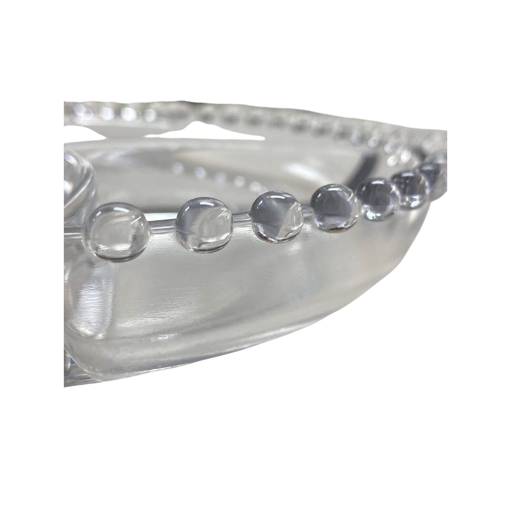 Enhance your serving presentation with this elegant glass serving plate. Its beaded edge adds sophistication, while the four sections keep snacks or appetizers neatly organized.