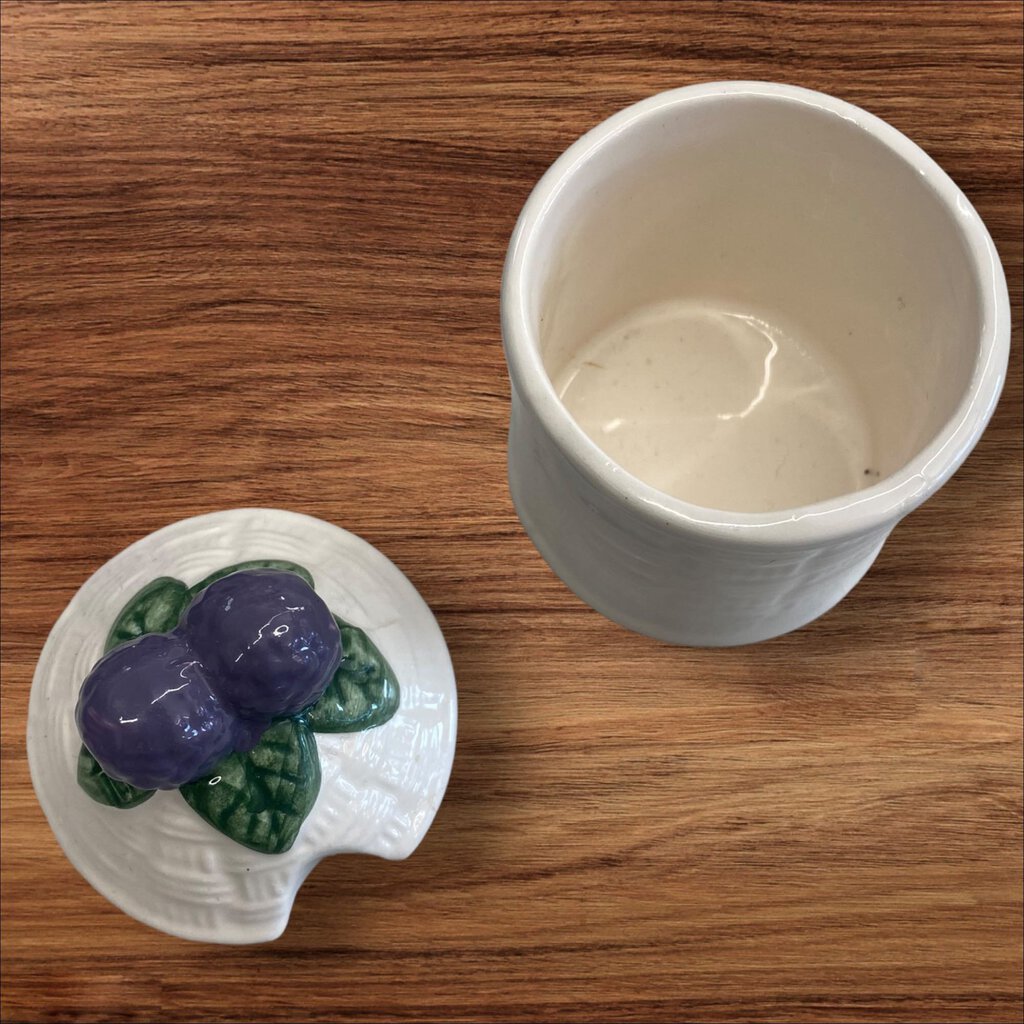 Vintage Ceramic Jam Jar Sugar Bowl Basket Weave Purple Berries Top NO SPOON