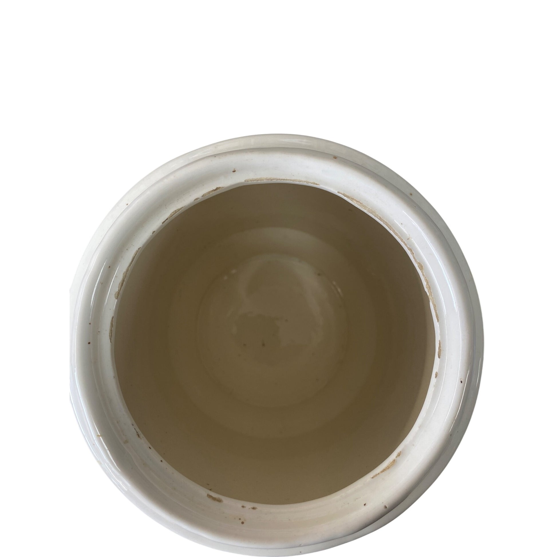 Minor wear on rim of canister. Height = 12 inches, wide = 7.5 inches