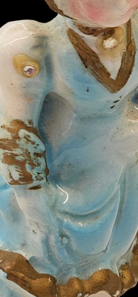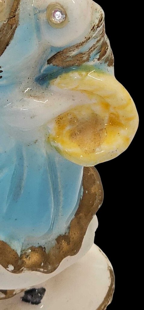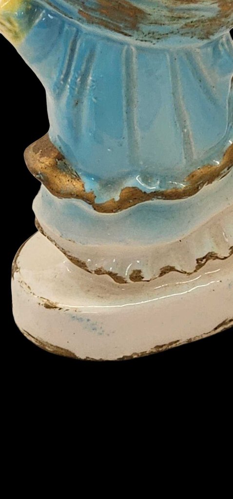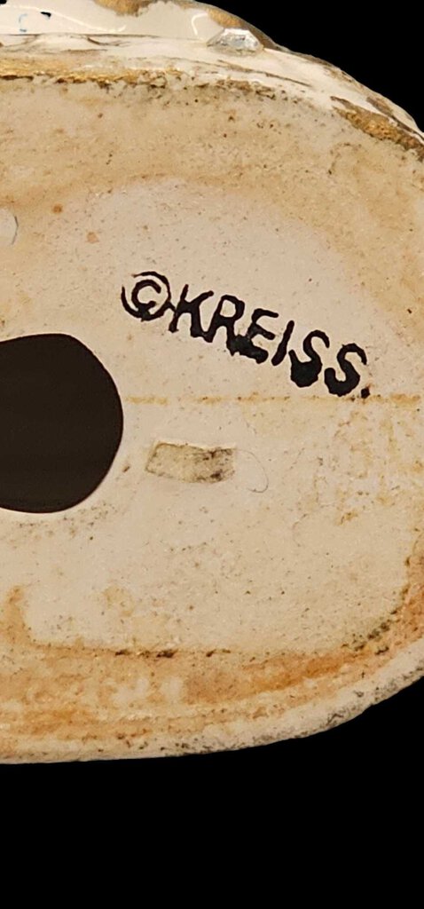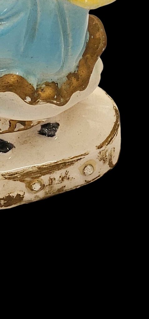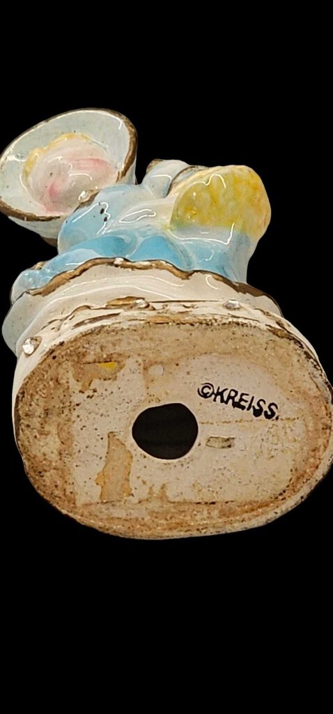Vintage Ceramic Porcelain KREISS Lady Figure Folk Blue Bonnet FlowerBasket