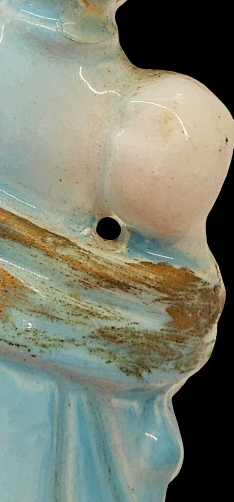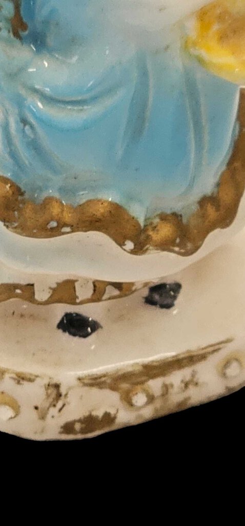 4.5" H x 2" W - Good vintage condition. Some fishing of border paint. Flowers in basket may be missing.n