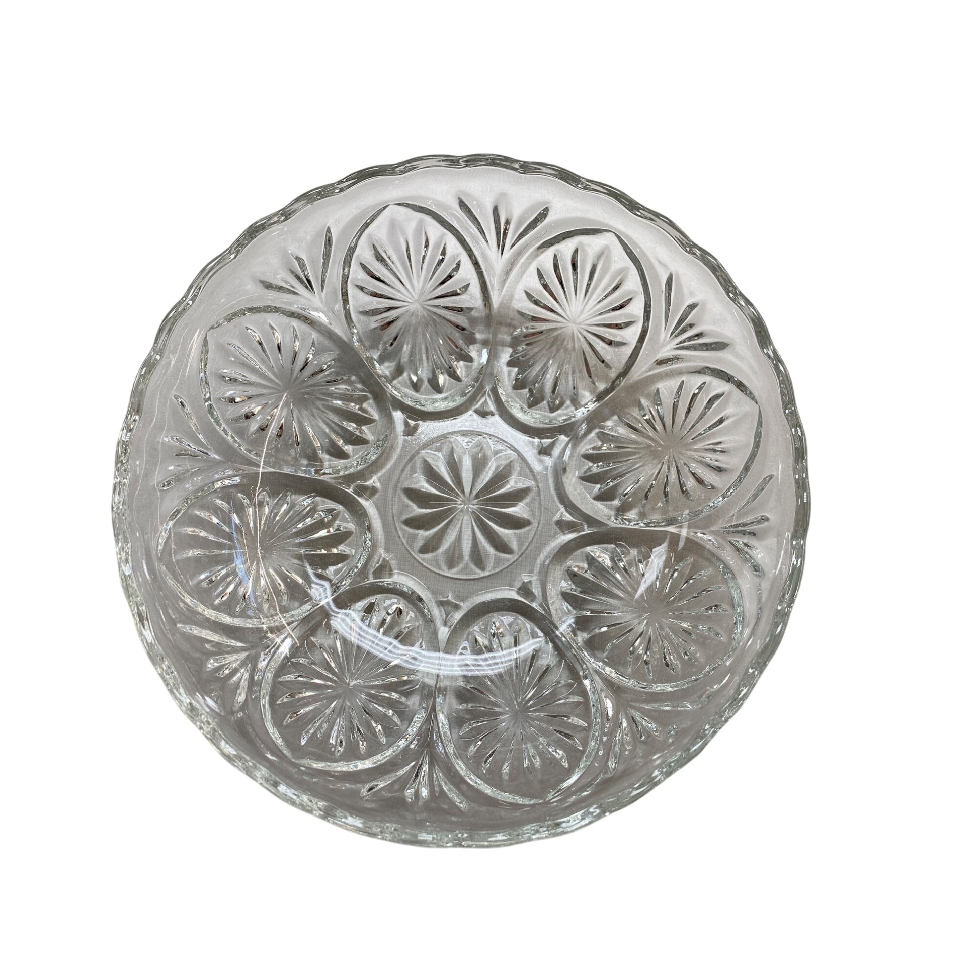 This exquisite vintage cut glass fruit bowl is an elegant addition to any table setting. Its intricate design reflects light beautifully, creating a captivating display. Ideal for showcasing fresh fruits or as a decorative centerpiece, this bowl combines functionality with timeless elegance. A must-have for those who appreciate classic art.