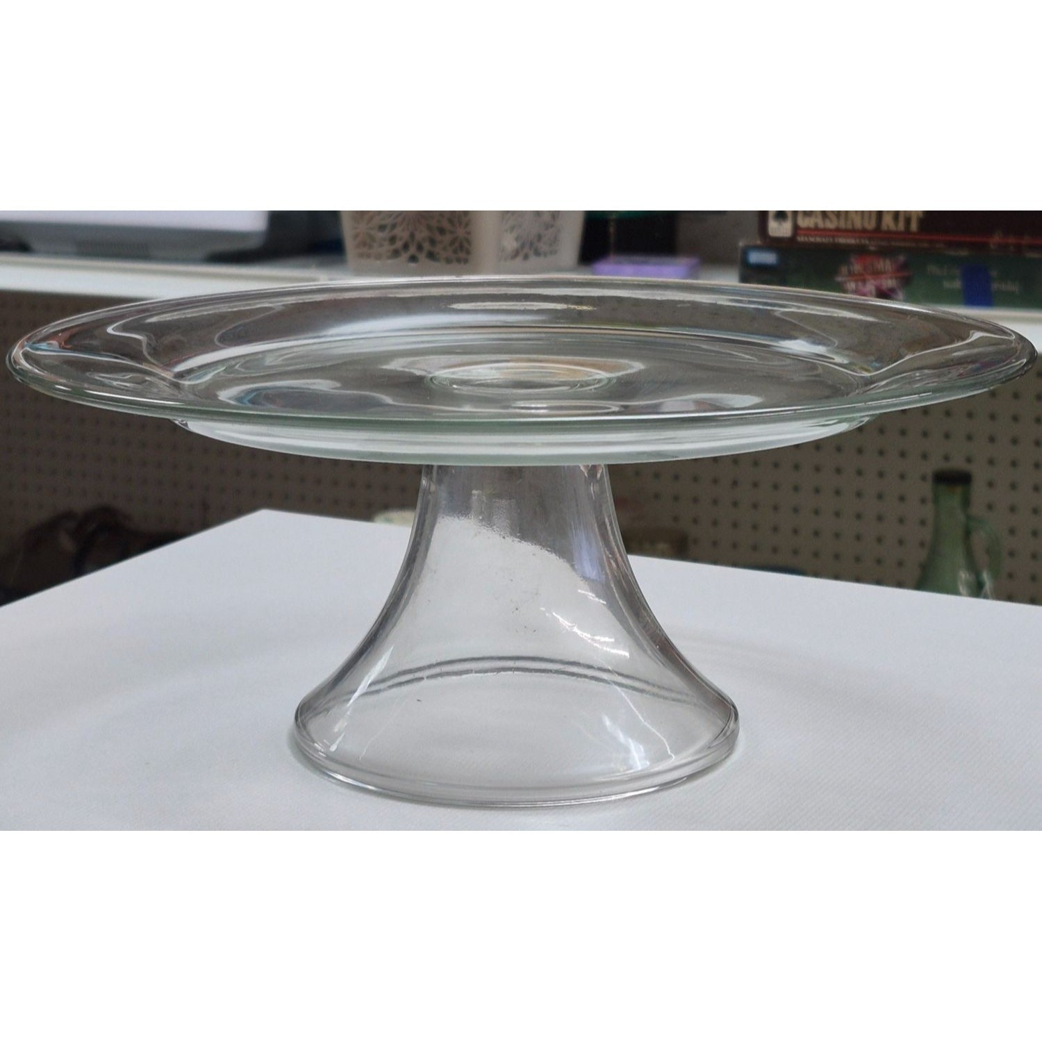 Vintage Clear Glass Cake Stand With Pedestal Base Elegant Design Ideal For Desserts & Displays Durable & Timeless