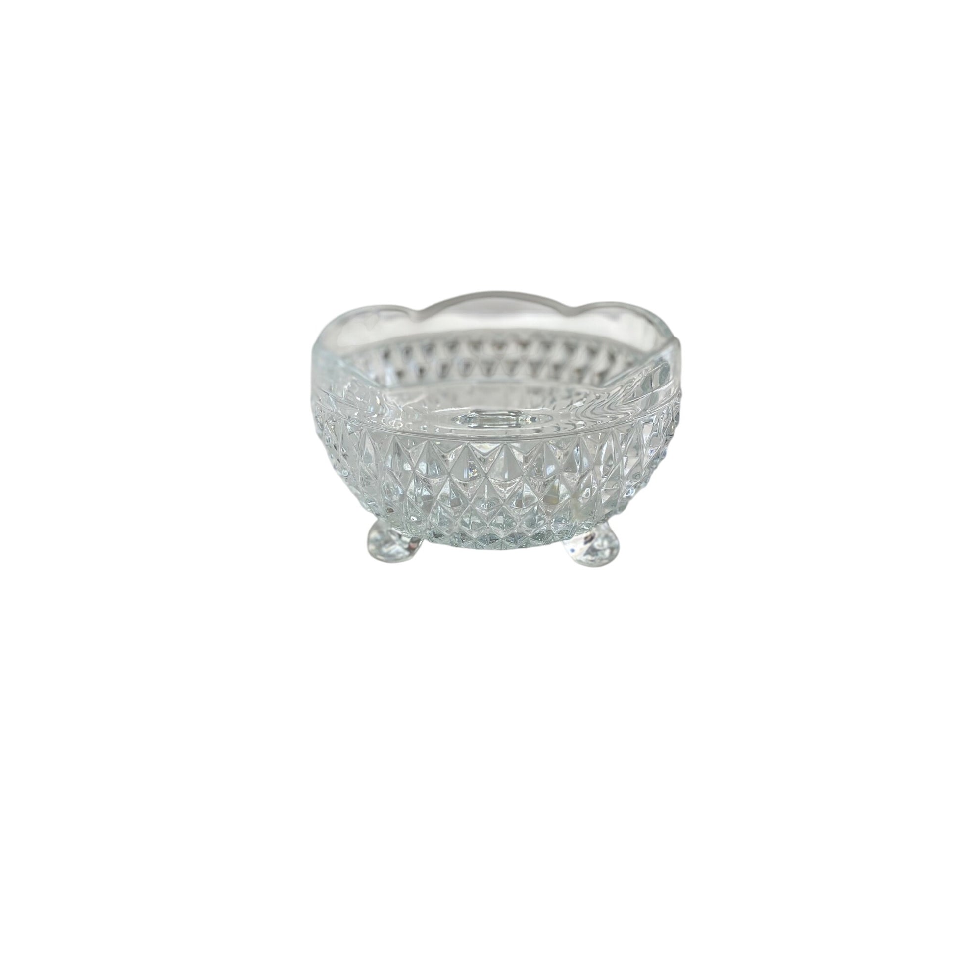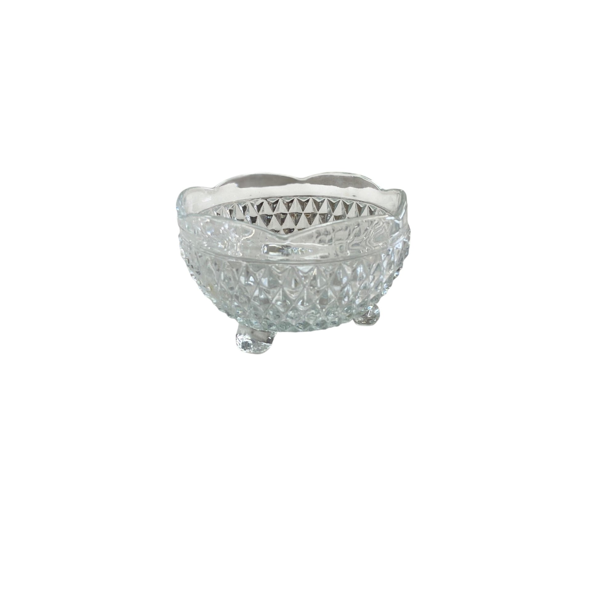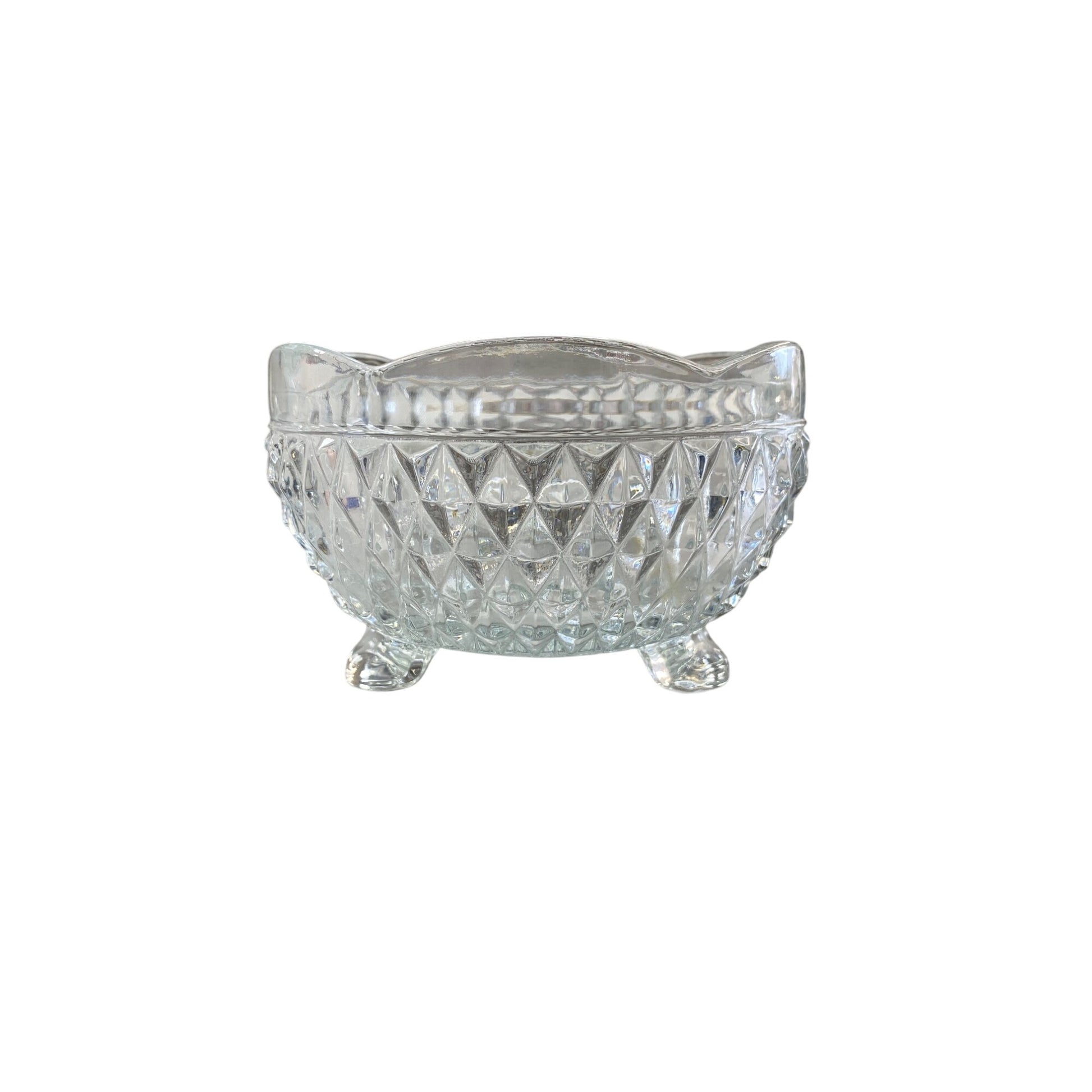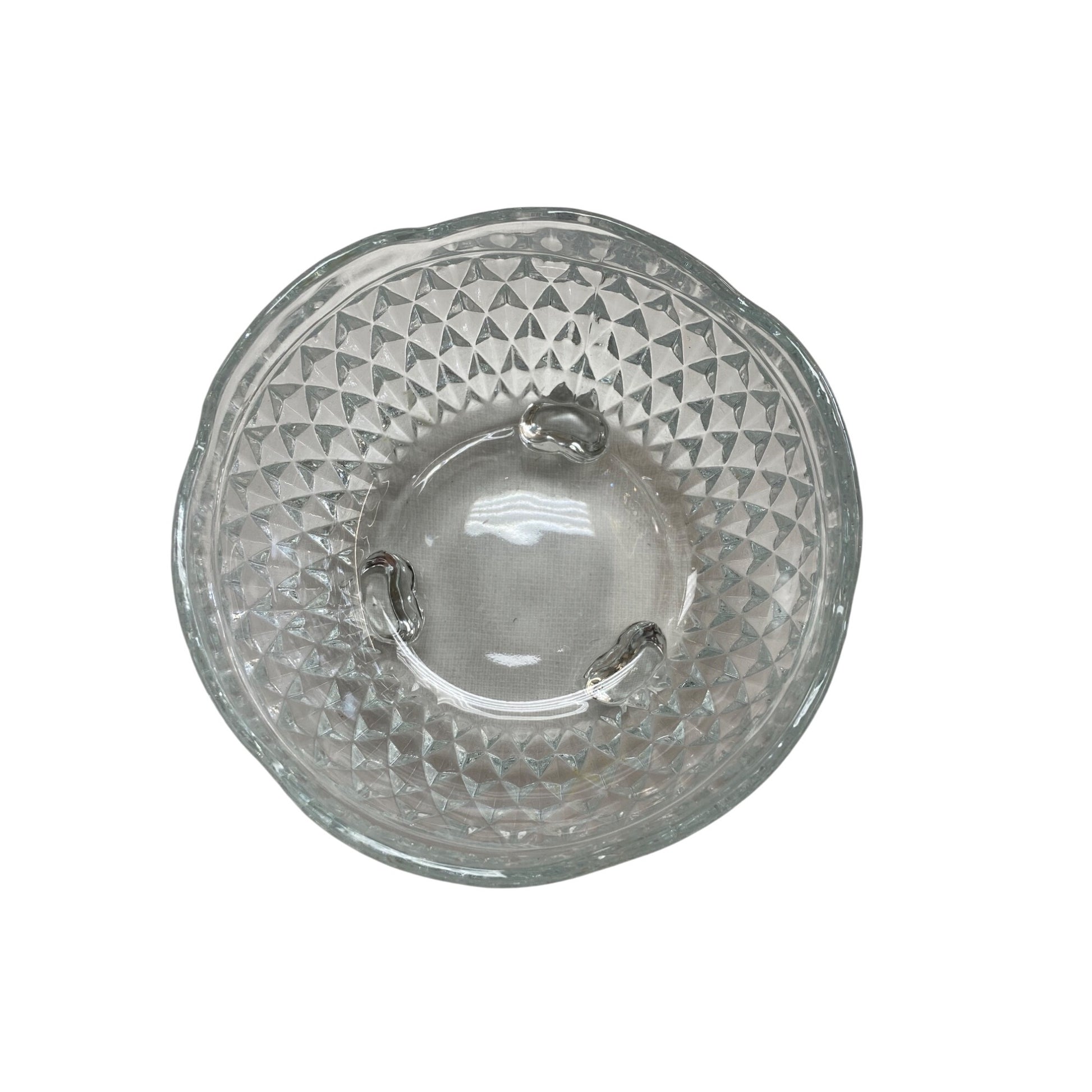 Add elegance to your tableware with this vintage clear glass bowl. Its diamond pattern and scalloped edge bring sophistication to your decor or serveware.