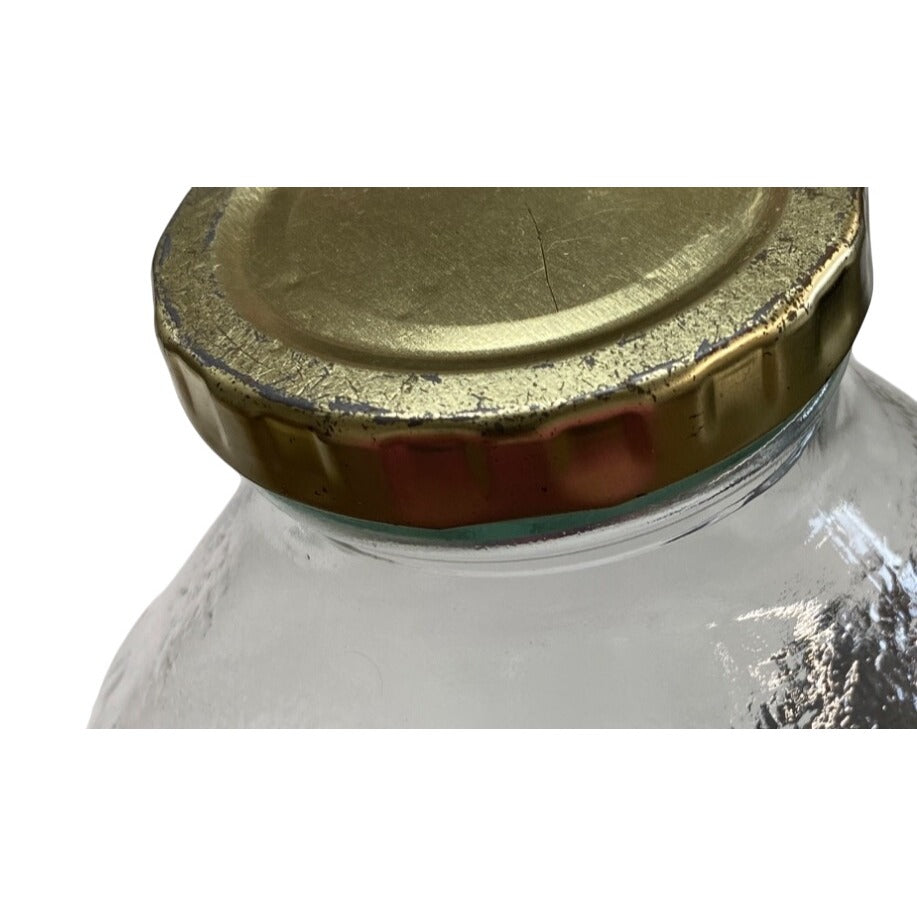 This vintage glass milk bottle, with its elegantly curved structure, is a charming addition to any kitchen or collection. Its gold metal lid provides a secure seal, making it ideal for storing beverages or dry goods. Decorative yet functional, this bottle adds a touch of nostalgia to your space.