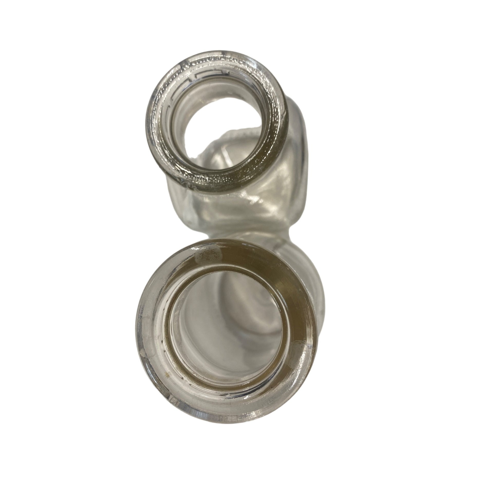 Vintage Clear Glass Milk Bottles Set Of 2 With Embossed Base & Unique Shape