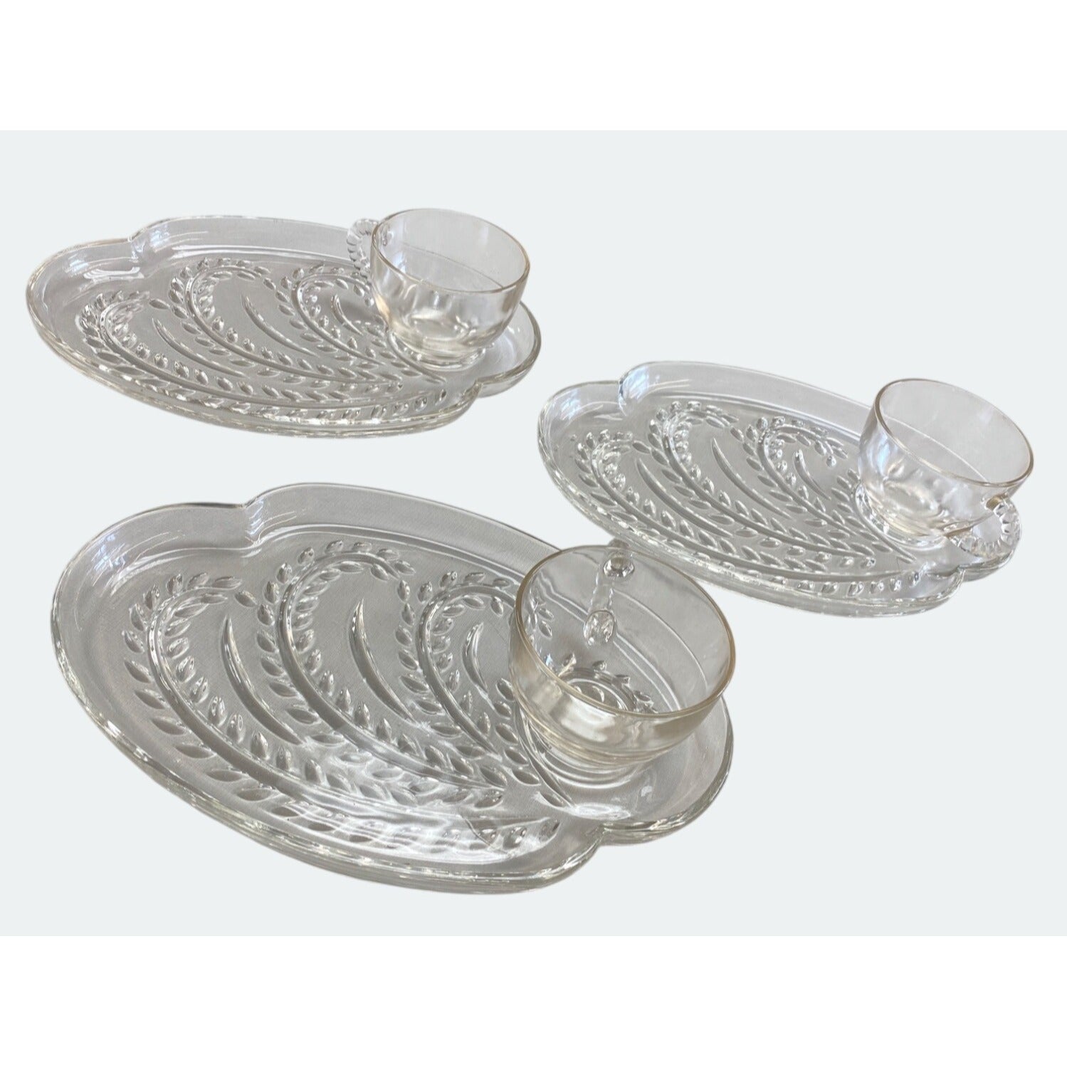 Vintage Clear Glass Snack Plate & Tea Cup Set 3