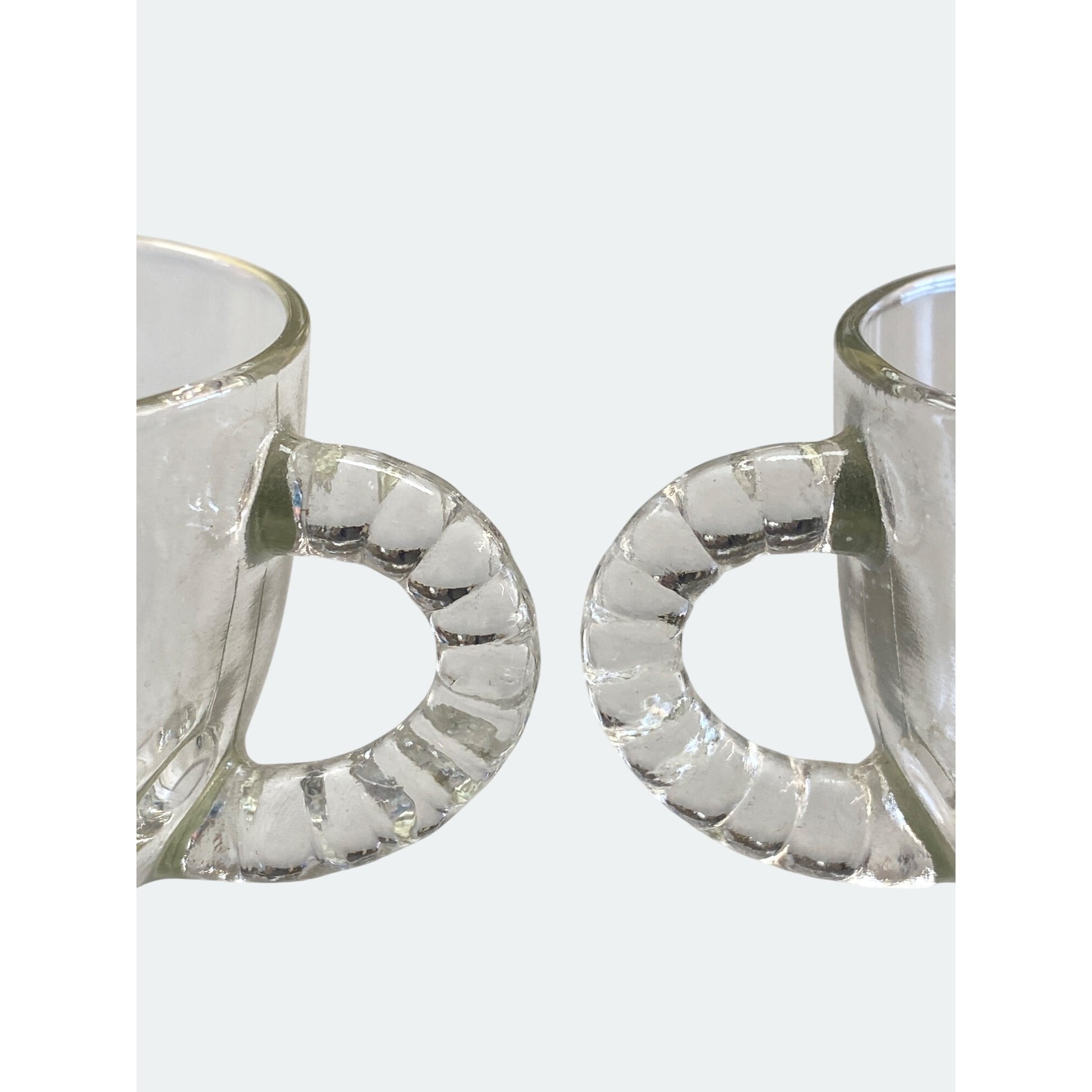 Elevate your tea or coffee moments with this exquisite set of clear glass cups. Their textured handles add both style and comfort to your grip.