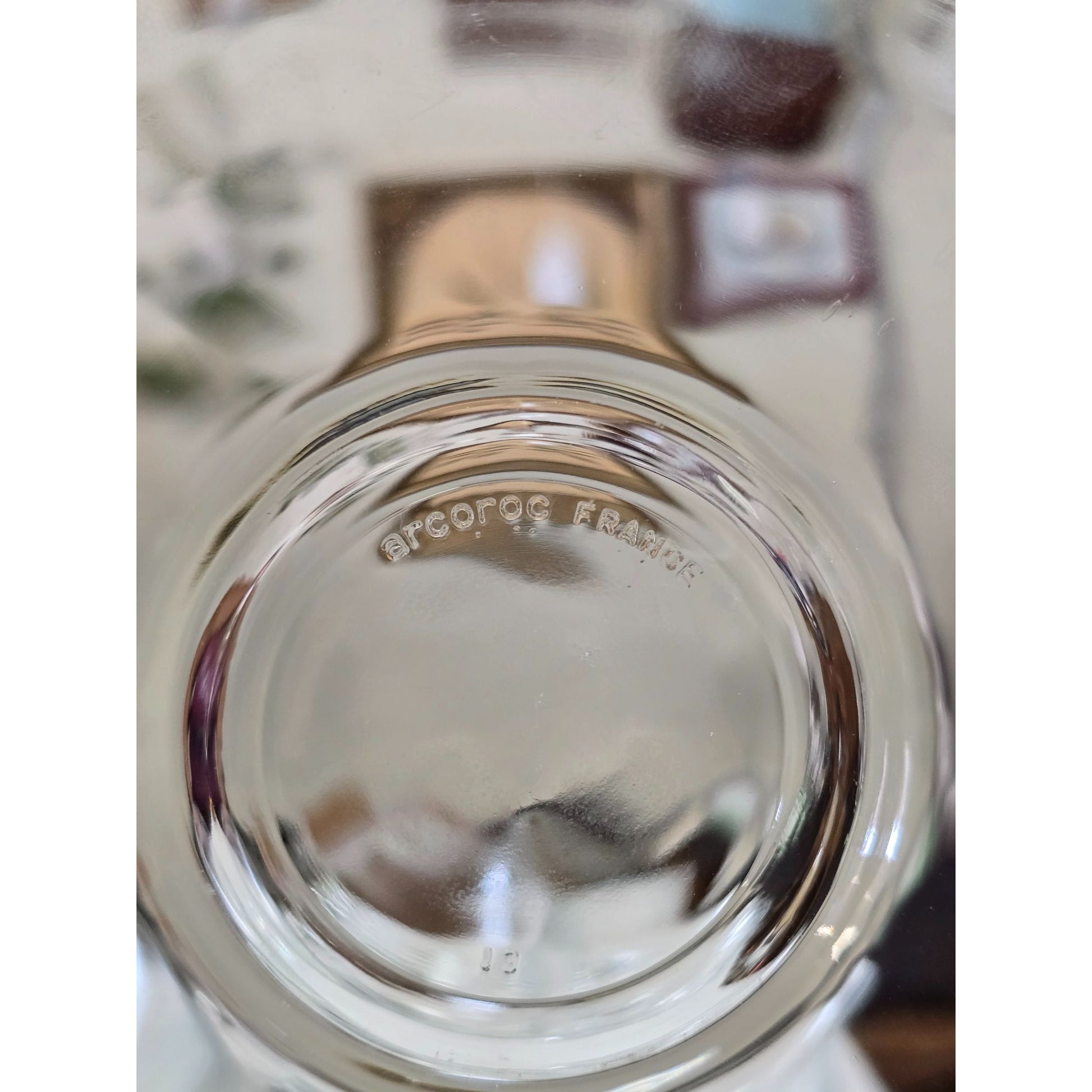 This beautiful, clear glass dinnerware set was originally sold under the Cristelle name. Still, most pieces are marked Arcoroc France, a trusted maker known for durable, lead-free glassware used in homes and restaurants worldwide.