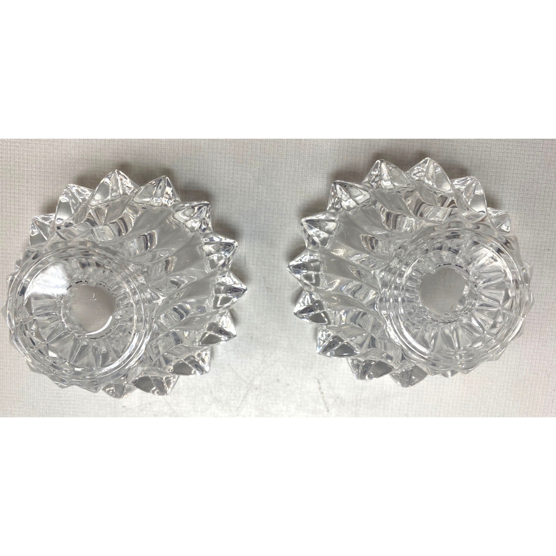 These intricate crystal candleholders add sophistication to any space, with their dazzling starburst design reflecting light beautifully. Ideal for creating a warm, inviting ambiance.