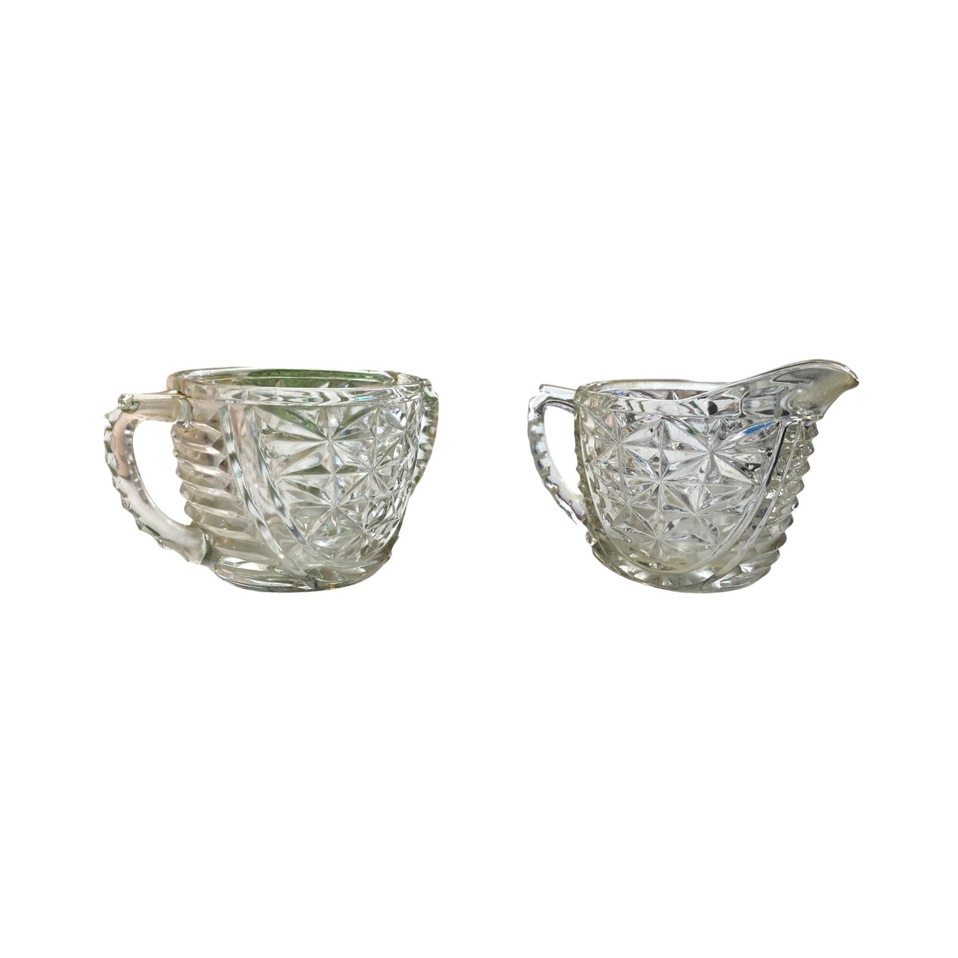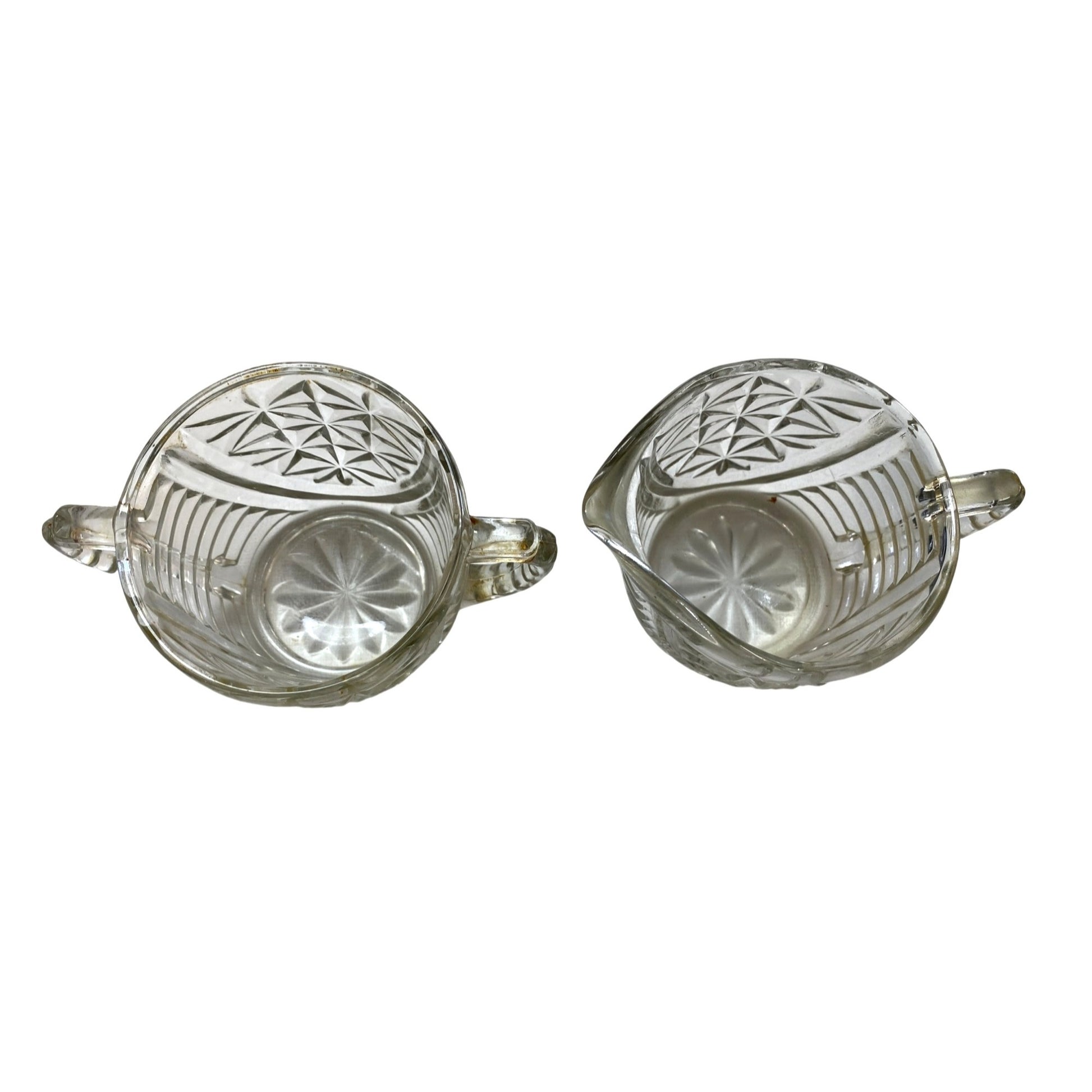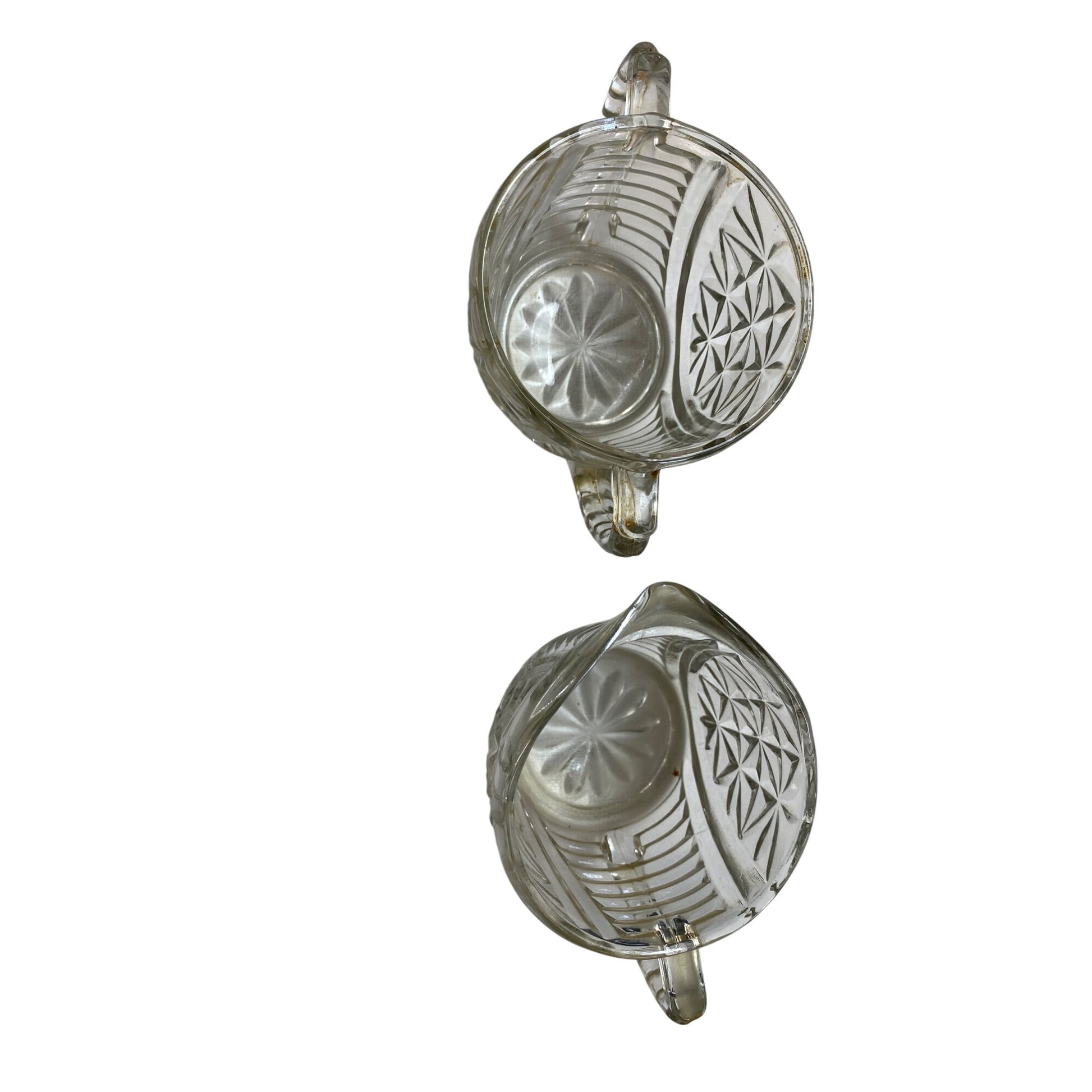 Vintage Diamond Pattern Glass Creamer & Sugar Bowl Set