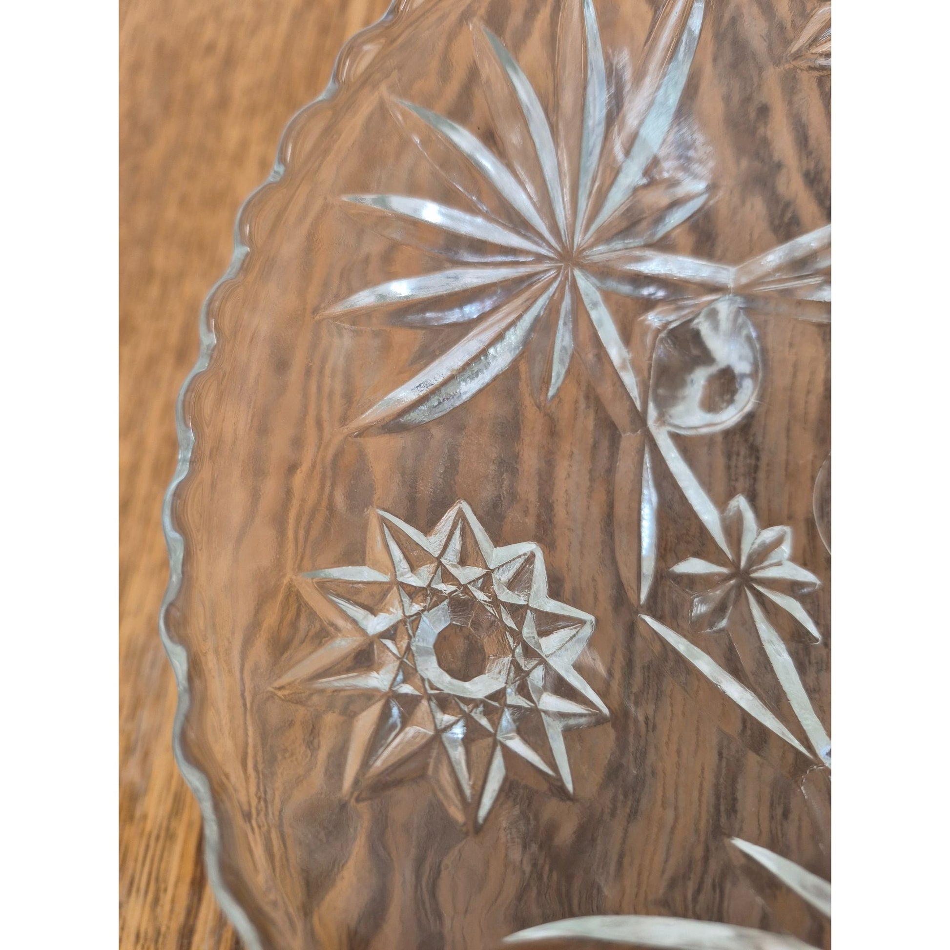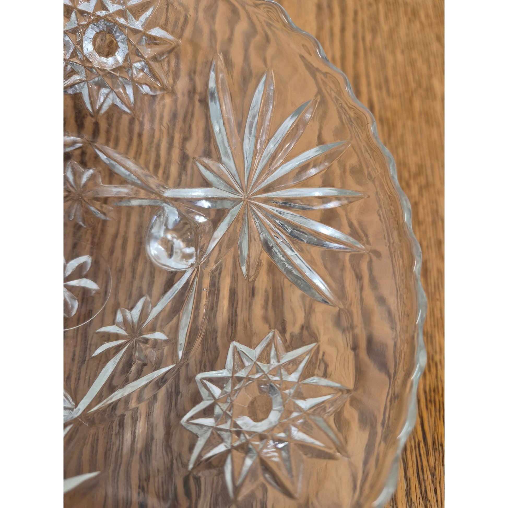 This vintage glass bowl combines elegance and functionality with its detailed starburst and floral engravings. The footed design adds a touch of sophistication, making it an eye-catching centerpiece for your dining table or decorative display. Its clear glass allows it to blend seamlessly with any decor, enhancing the aesthetic appeal of your home.
