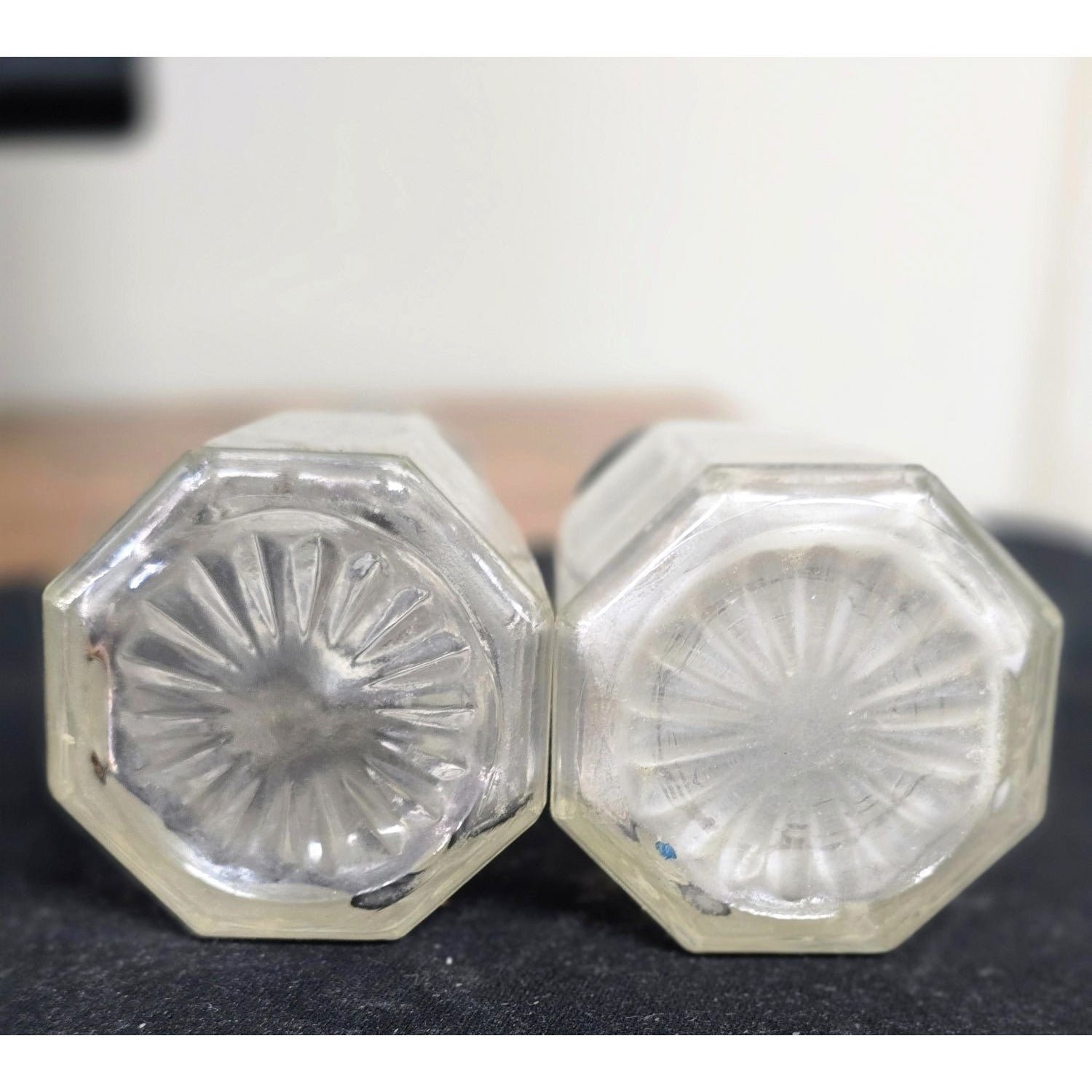 Elevate your dining experience with these elegant vintage salt and pepper shakers. Their octagonal glass design coupled with durable stainless steel lids adds a touch of nostalgia and sophistication to any table setting. These timeless pieces are both functional and decorative, making them an ideal addition to your kitchen collection.